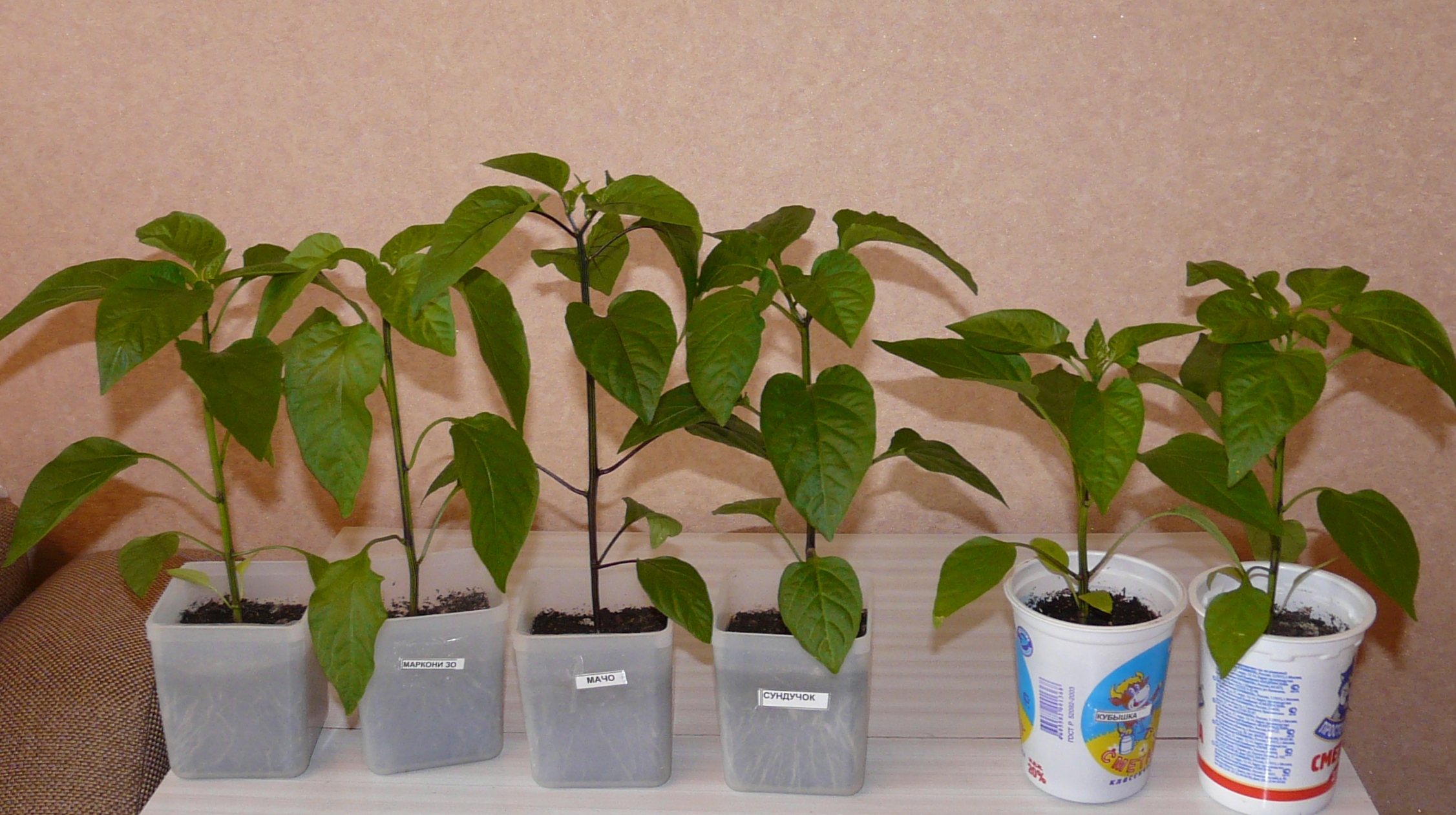 Общий вид моих перцев, половина из них сидит в литровых горшочках. Этим не повезло, растут в поллитровых стаканах. Первые два перца Джемени и Маркони Золотой посеяны 08,02, рядом еще два перца Мачо и Сундучок - 12,02, последние Кубышка и Оранжевый из магазина - 26,02 - почти все одинаковые - у них по 10-12 листьев, в высоту около 24 см и у всех в разное время убраны первые цветы. Майята -взошел 01,03 и сорт Дарья взошел 17,02 - почти одинаковые, разница в возрасте пол месяца. В основном все перцы в такие после удаления коронного цветка.
