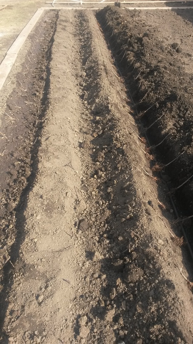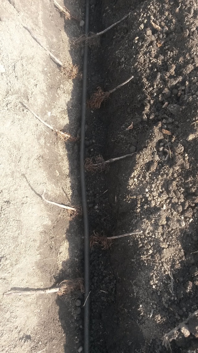 В питомнике остались зимовать, Алтайские сорта по десятку саженцев-однолетки, среди сортов был и Ханикрисп. Четыре саженца этого сорта я осенью пересадил в контейнер и хранил в подвале. А шесть остались в питомнике.