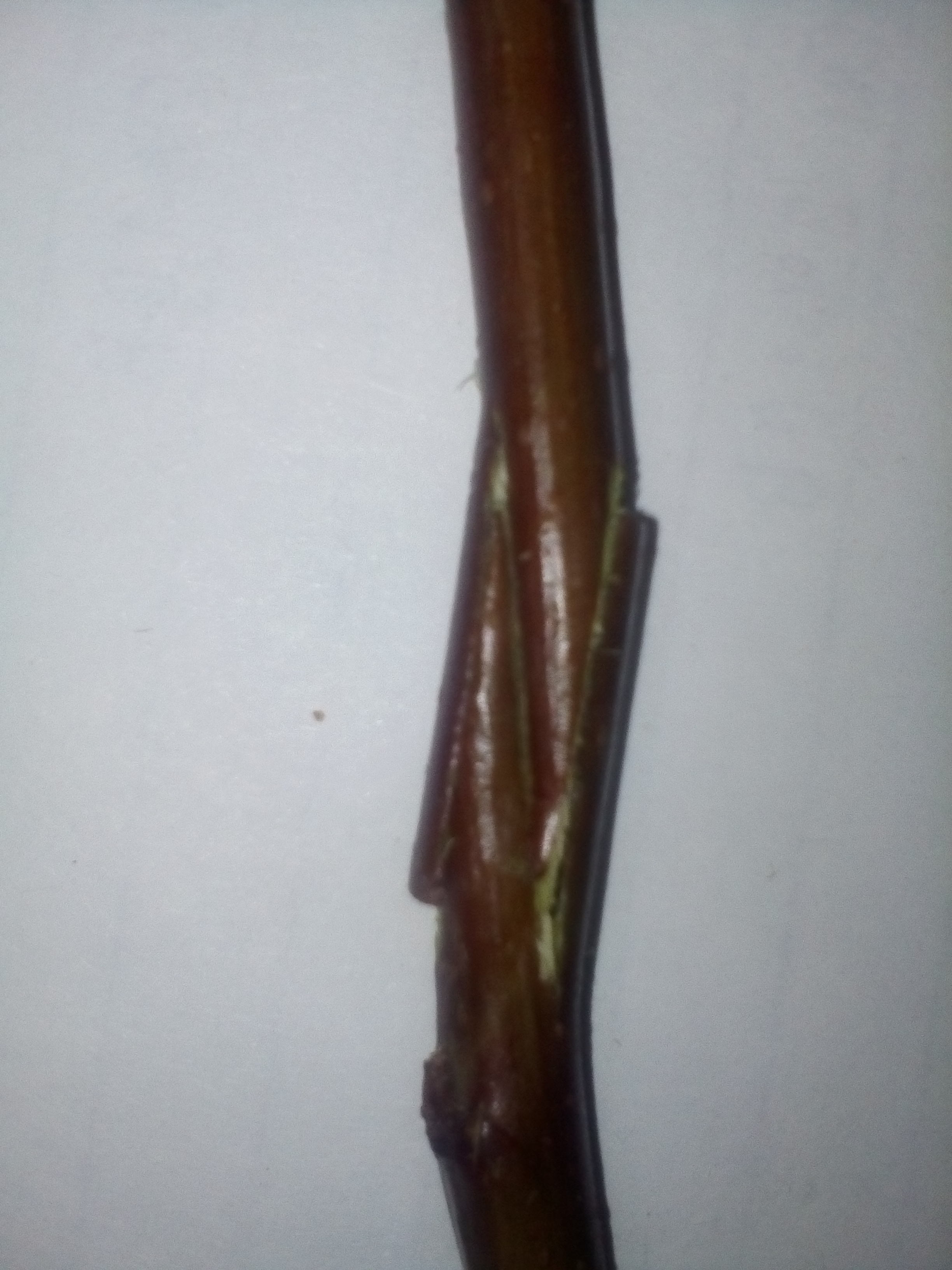 На момент прививки черенок был тоньше карандаша, вторая сторона (было не подлезть с камерой) затянулась полностью корой: как и писал - делал язычки на две стороны. Духмяная на красной рябине (к осени вытянулась более метра) - фото не очень чёткое