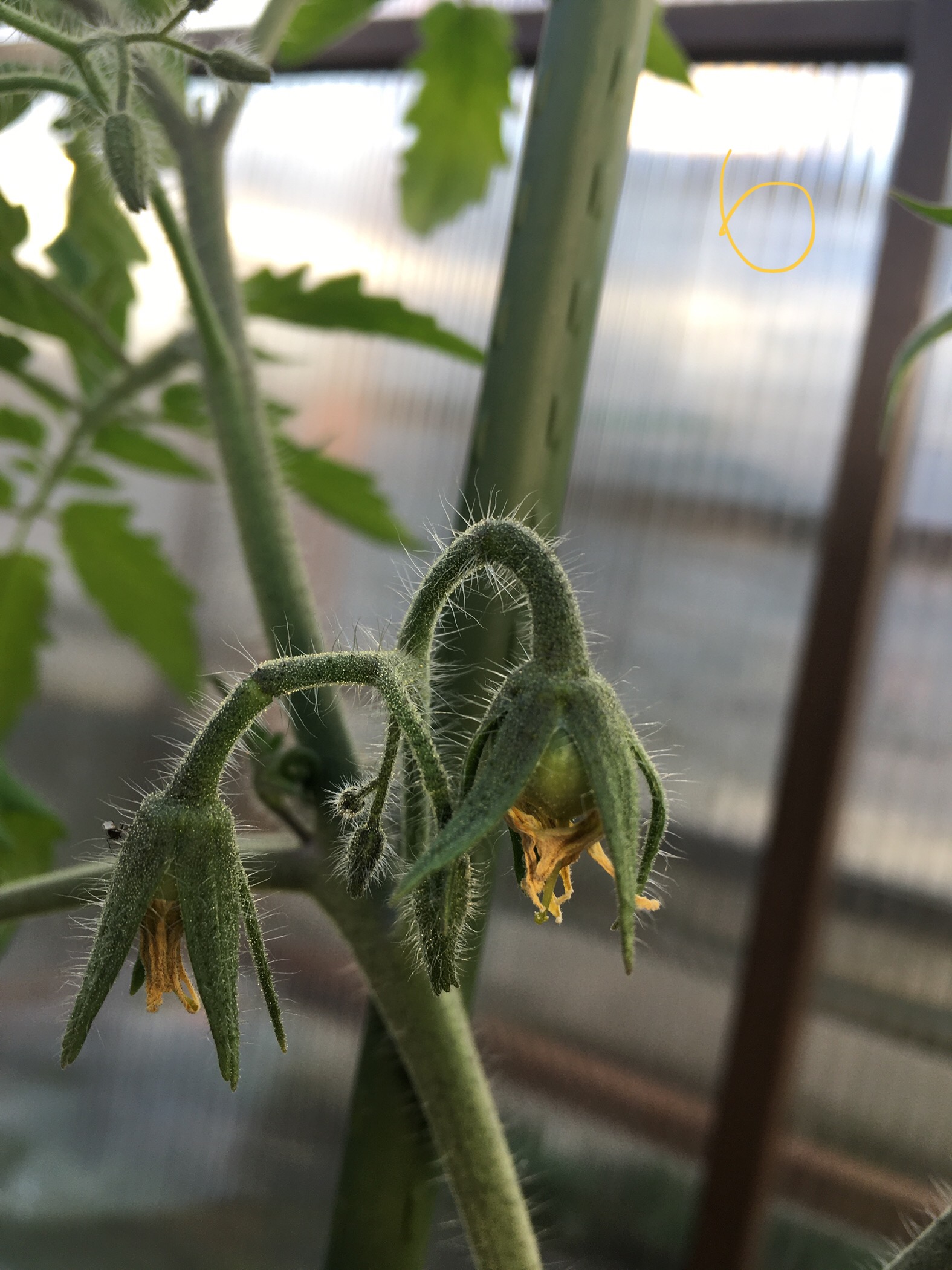 Розовый Гай уже с помидориной с горошину. И Идил цветёт.
