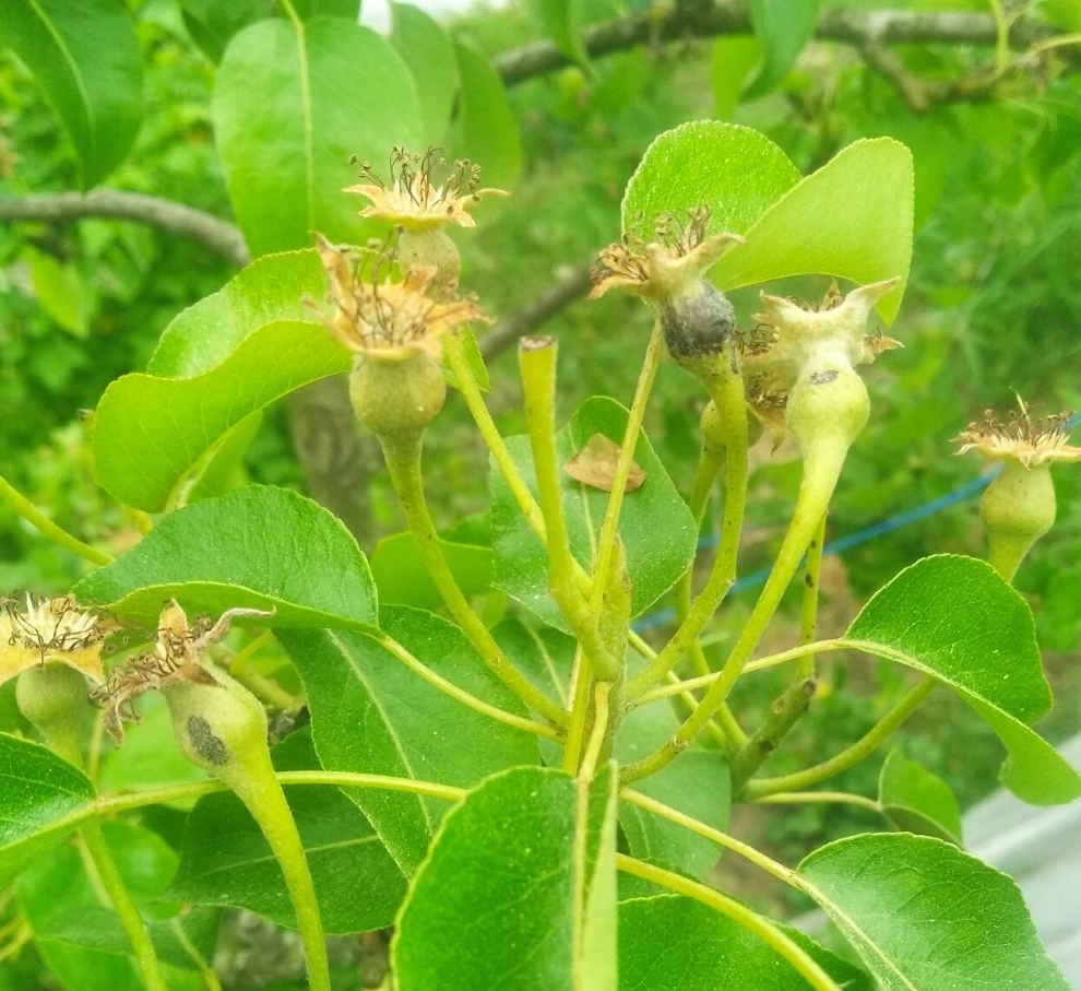 Черный цвет у груши это реакция на неблагоприятные условия. Скорее всего похолодание во время цветения. Также как и у яблони в этот период состояние поддерживается фунгицидами и подкормками. Безусловно влияет физиология сорта. Более холодостойкие сорта меньше чернеют или вообще не чернеют.Инна Л. писал(а): ↑20.05.2024, 11:56 на Просто Марие неделю назад появились черные пятна на листьях и завязях, я их пообрывала в надежде, что это последствия заморозков, а на обработку не было времени. В прошлом году кроме трубковерта никакой заразы не наблюдалось. К этим выходным количество черноты заметно увеличилось, с тревожной скоростью преимущественно поражаются завязи и пустоцвет