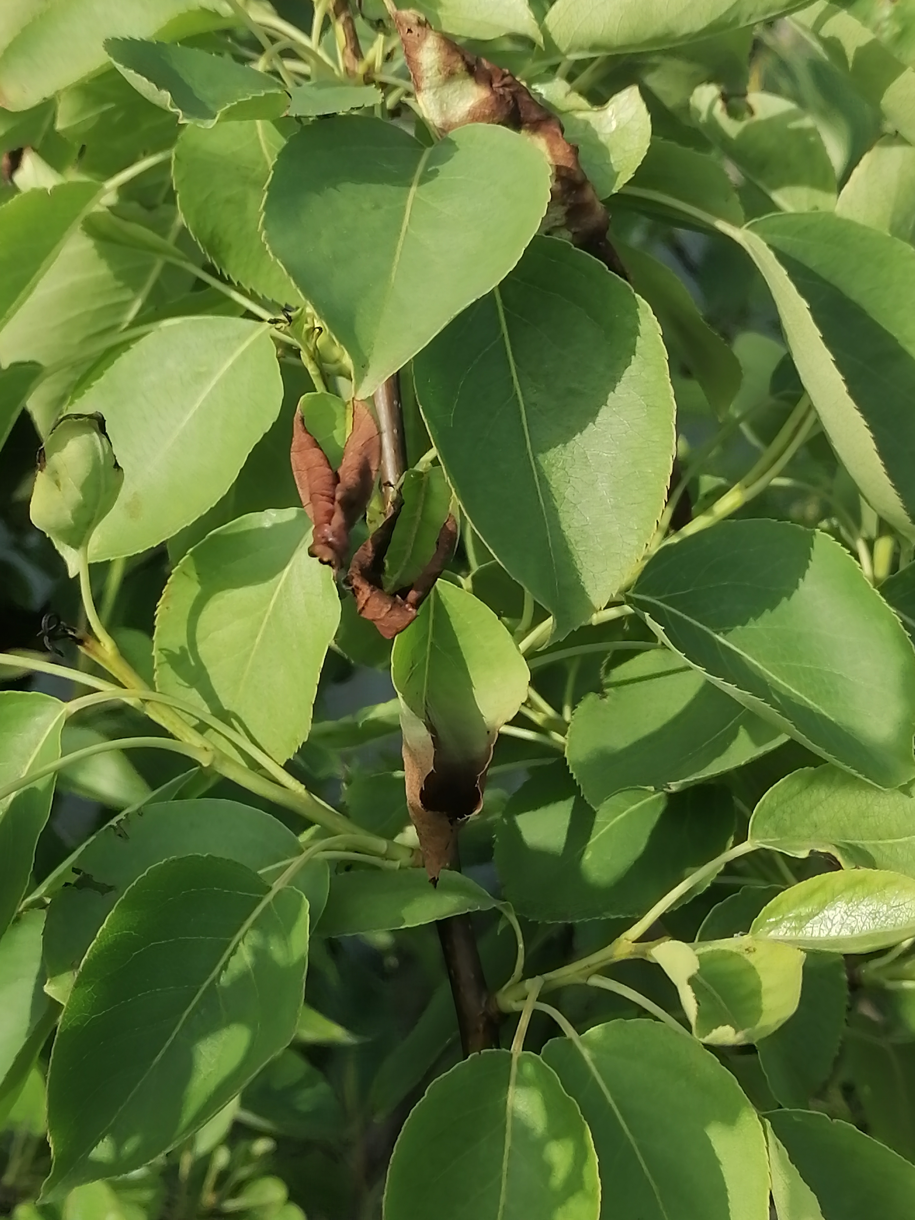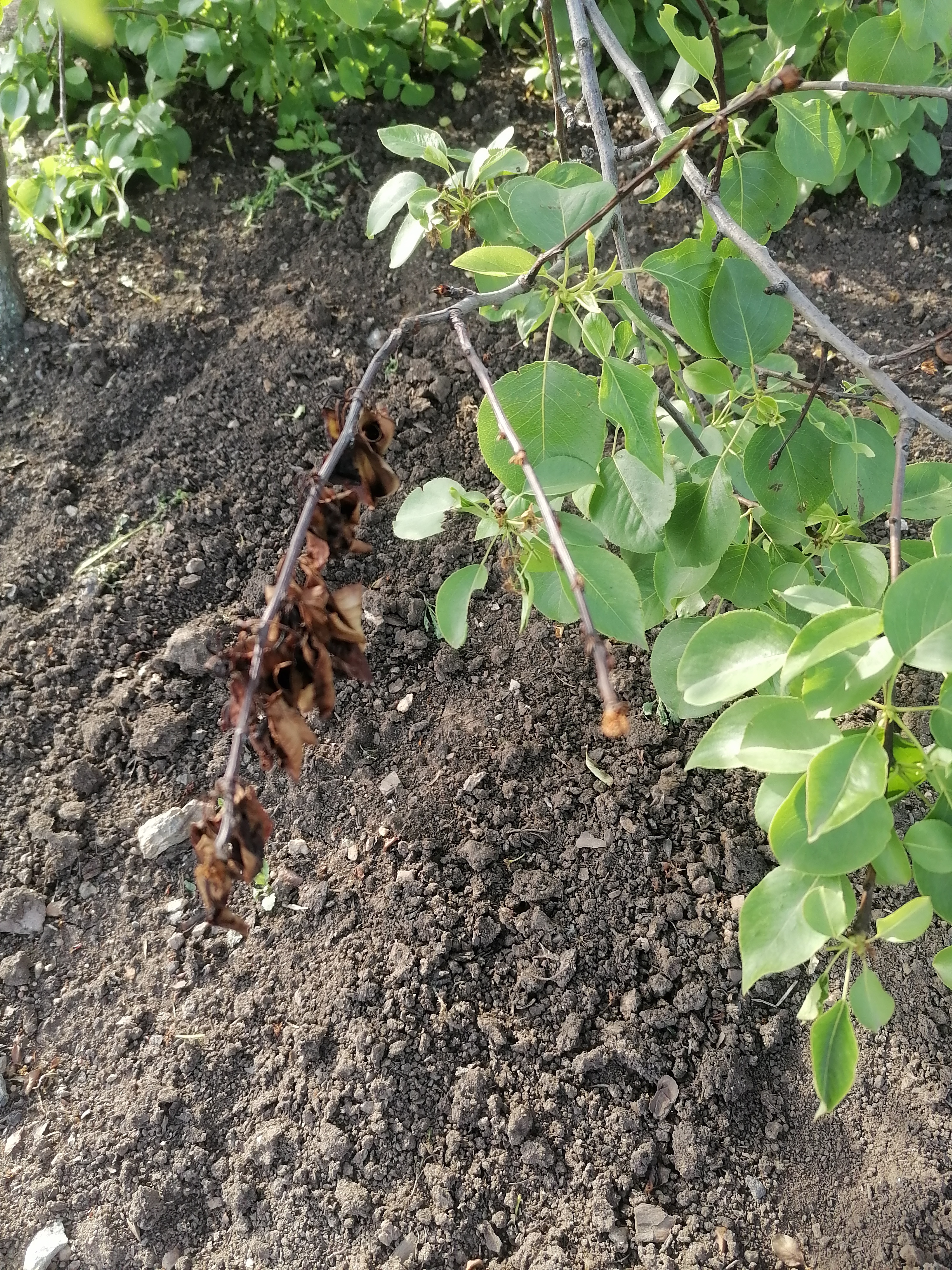 Помогите поставить правильный диагноз. Груша Красуля 8 лет, вот так усыхают ветки их было больше, я обрезала. Думаю Монилиоз, но плоды ни гнили ни разу. Катастрофически не везёт с грушами, была Вековая сдохла, щас похоже и эта туда же.