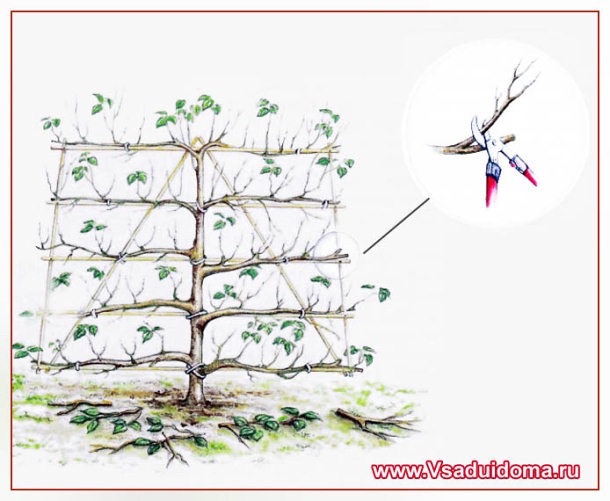 Вот какая шпалера попалась, стащила картинку. Никаких опор не надо, можно обойтись длинными бамбуковыми палками.