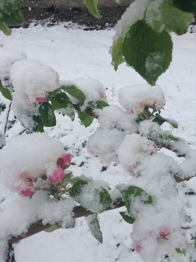, температура была нулевая. Ночью заморозки -3,5 градусов, яблони были в цветах.