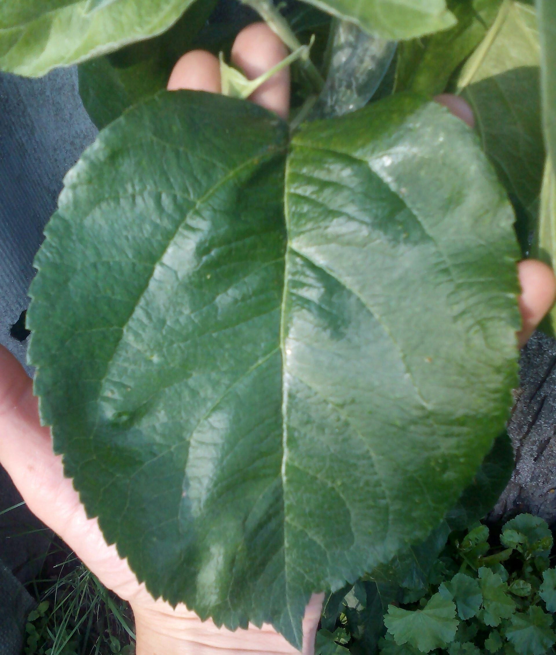 У меня вот такие листья на Орловской заре.Прививка этого года на поросль от спиленной яблони.