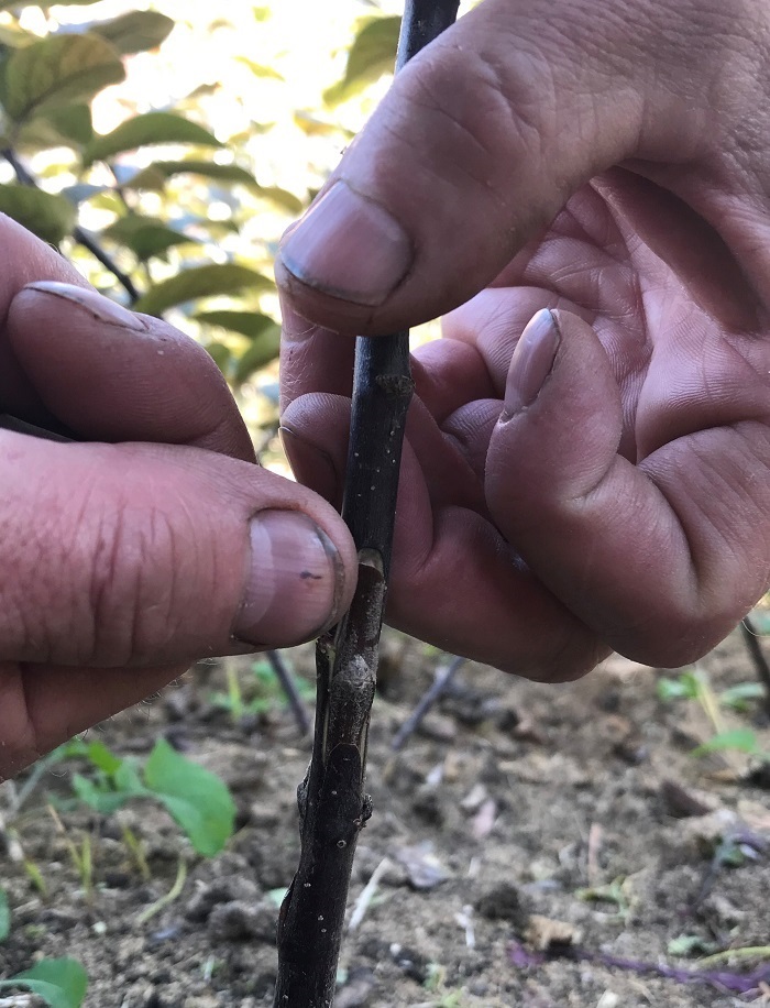 По поводу прививки. Этот саженец привит "за кору", а не копулировкой. Место прививки на фото не видно. На сильных двух-трех летних подвоях всегда получаются качественные саженцы, причем в любых условиях, важен подбор сорта.