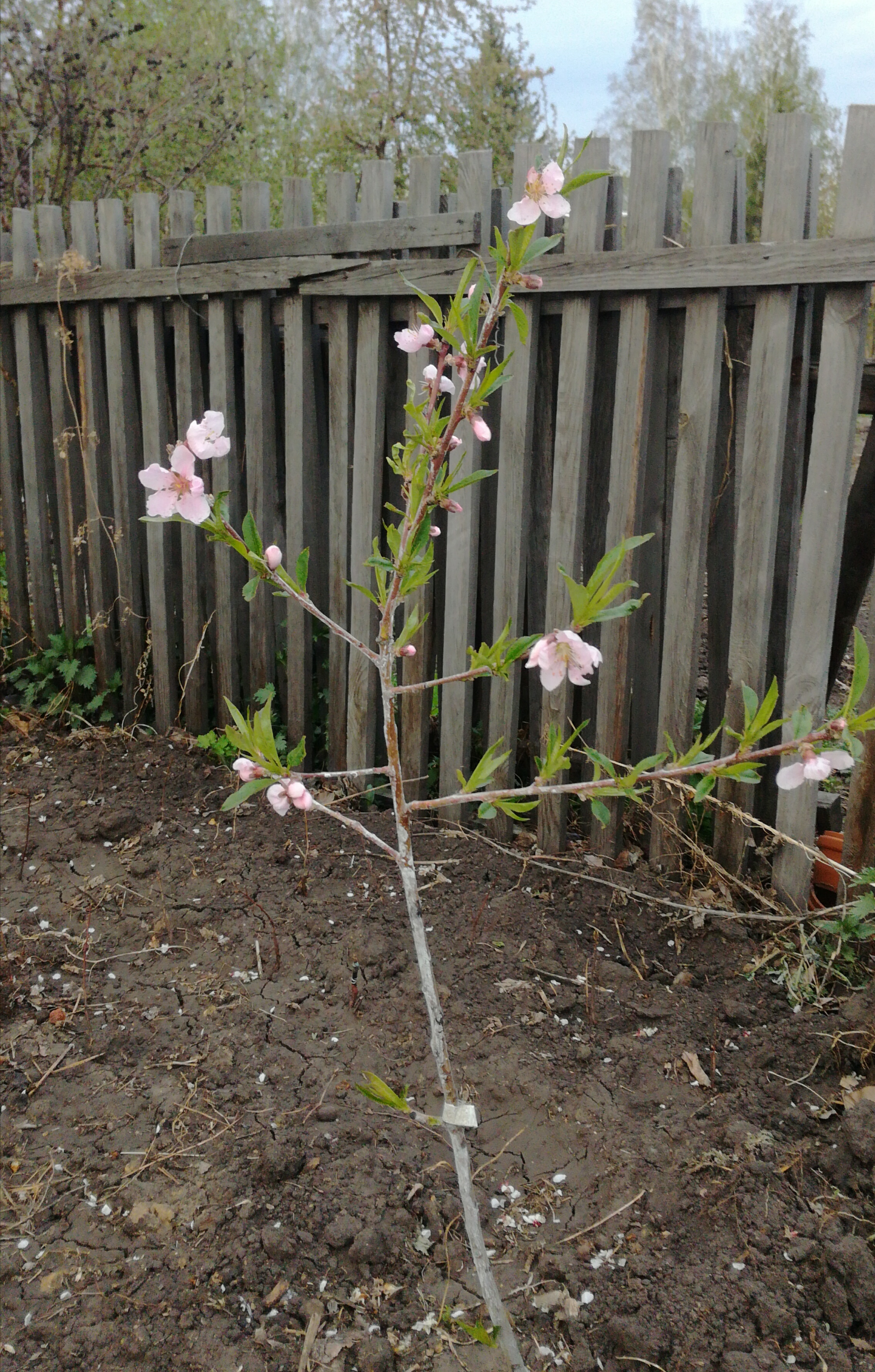 Высадила сеянец персика из теплицы 10 мая (2 зимы там зимовал),что-то грустно становится, если смотреть на то, что пригибать на зиму его.