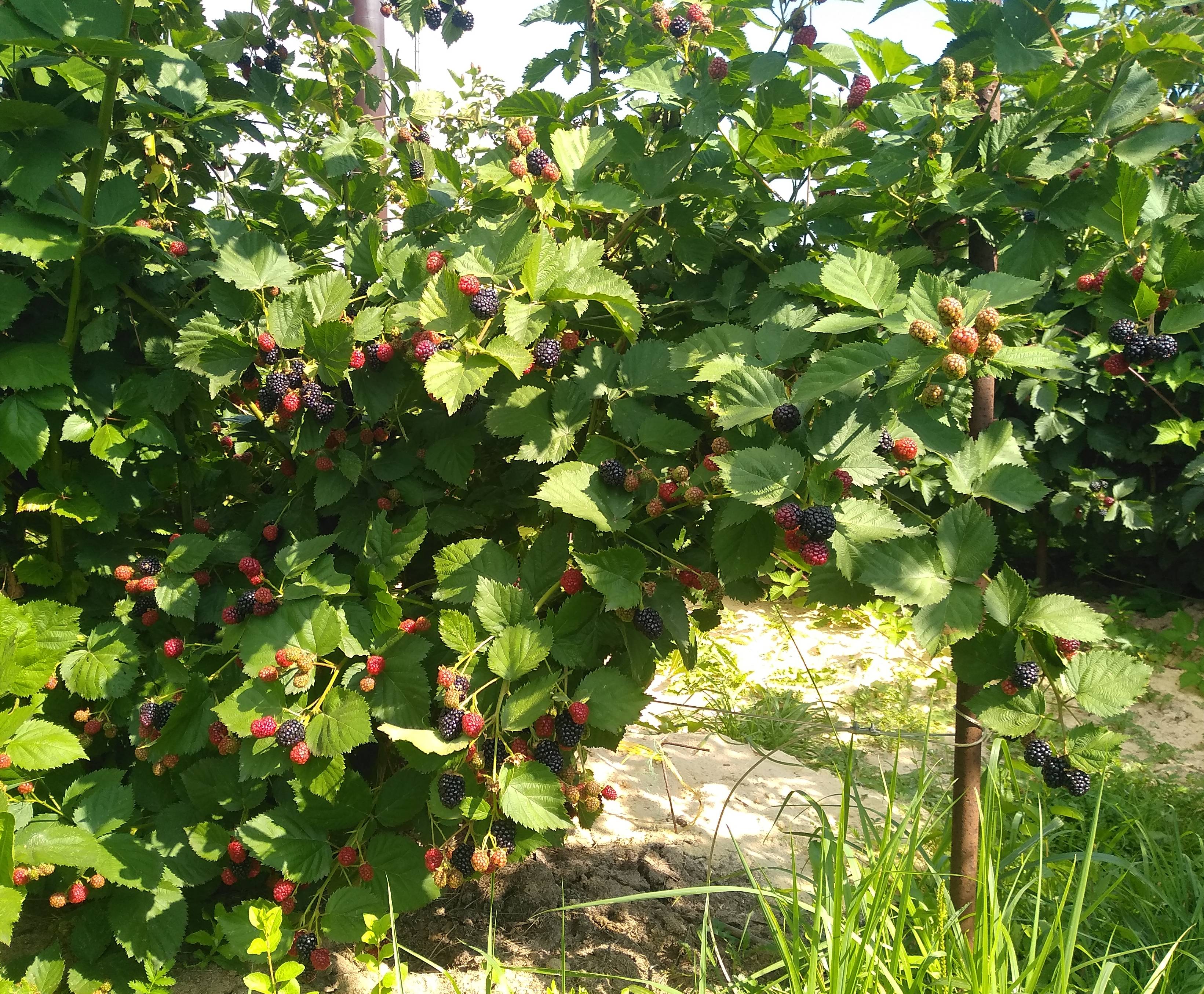 Первое плодоношение в прошлом сезоне. В этом году первые ягоды достигали размера в 4 см.Вкус ежевичный,аромат присутствовал.Сейчас сходит с дистанции,остаётся Блэк Сатин.
