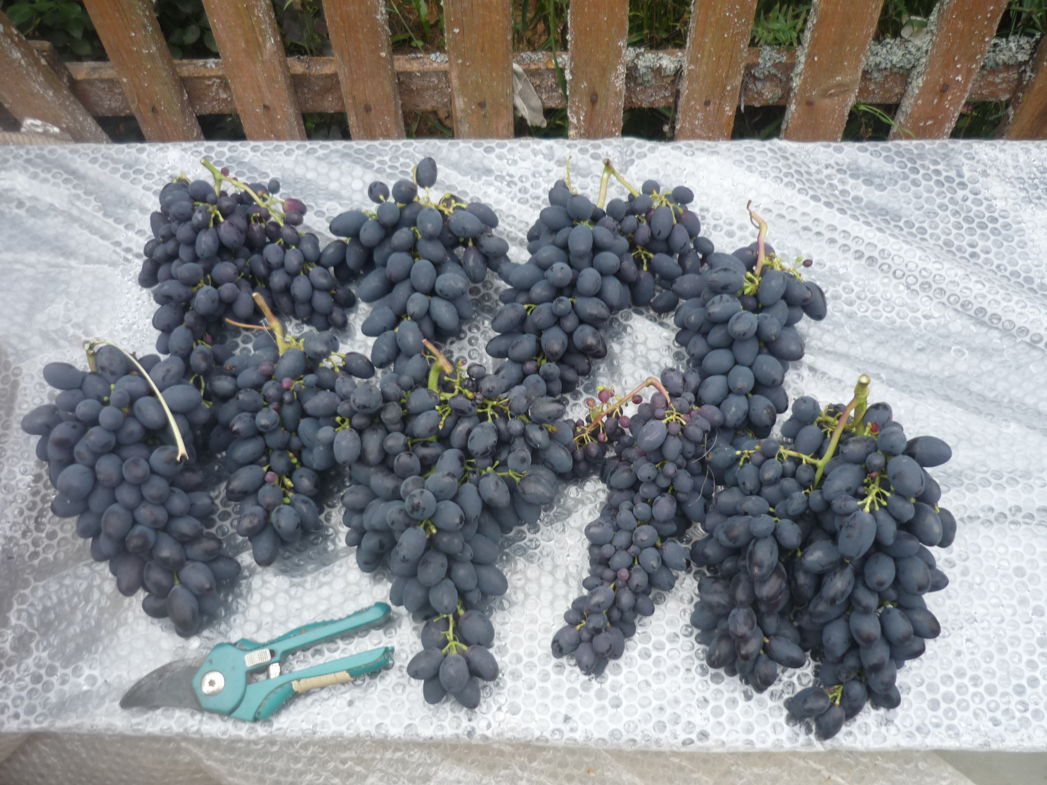 Амирхан(3-е фото) но смотрю на фото с интернета- совсем не похож и абсолютно нет розового окраса. 5-е фото- Восторг черный тоже от него(вкус слишком простой,сахара толком не набрал),кишмиш (сорт бы знать)-сладкий,рудиментов мало,ягоды мелкие.