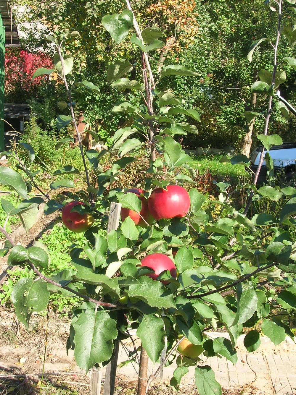 У меня всего одно посадочное место под зимнюю яблоню. Вот не знаю - менять эту что ли... И жалко ее - она так старалась в этом году - на второй год посадки при ее маленьком ростике аж 11 таких крупных подарила