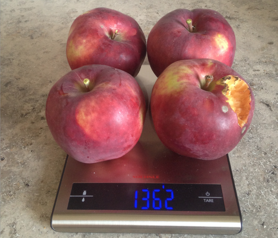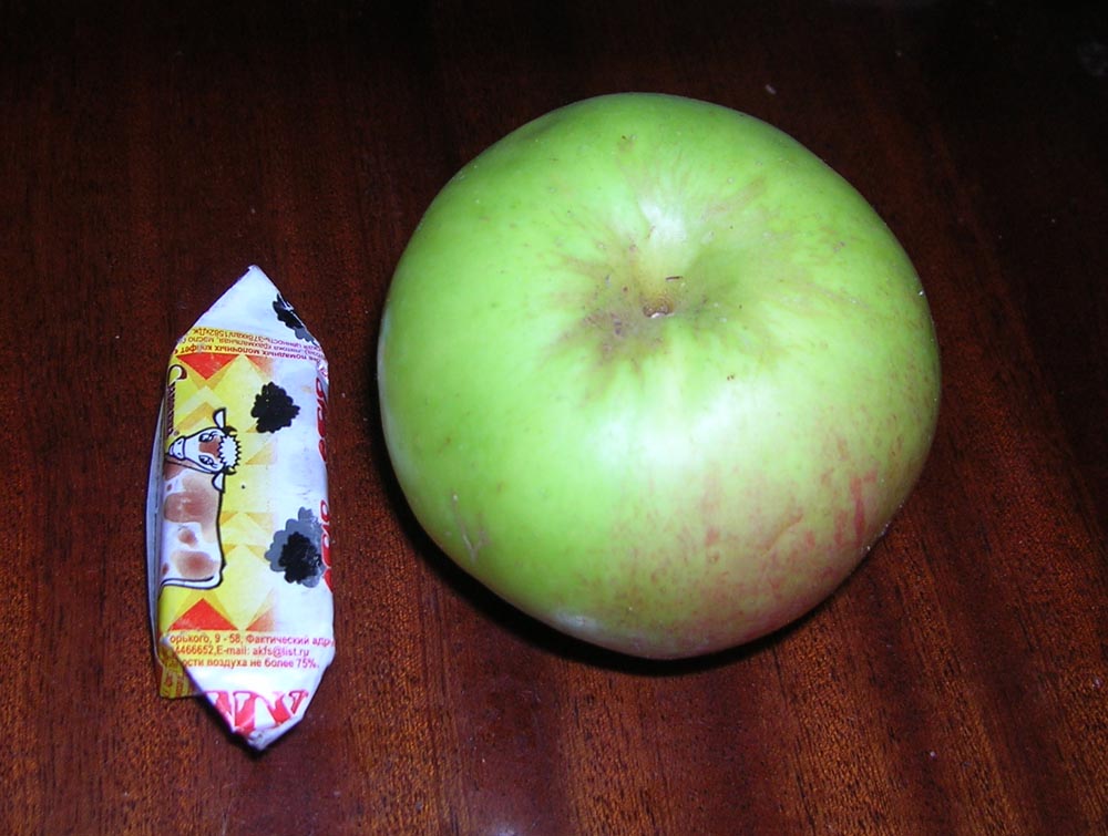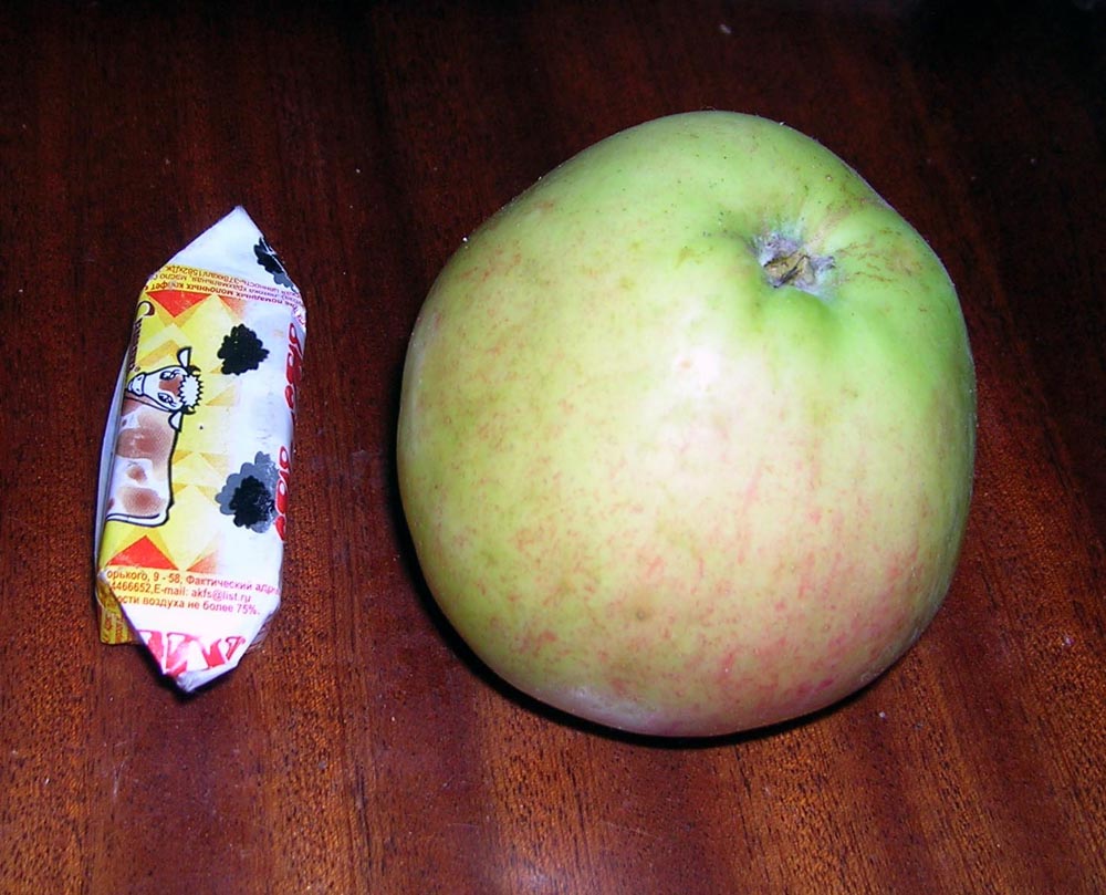 Смущает размер. Среднее яблоко весит 250 гр есть экземпляры и на 300 гр .