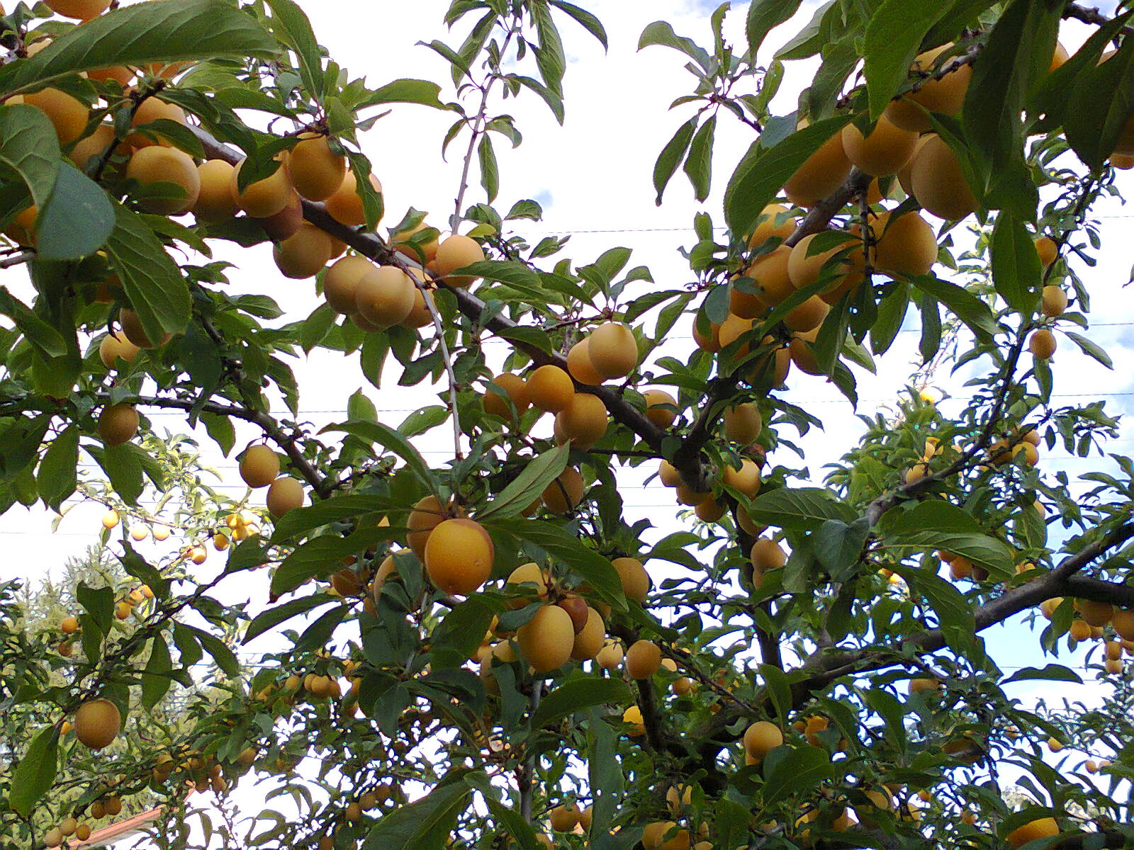 Созревает ранний сорт алычи гибридной Асалода (белорусской селекции). Прививка 2013 года, первое плодоношение.