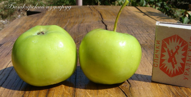 Плоды средней величины, коротко-грушевидные, часто неравнобокие, без рёбер, одномерные по величине и однообразные по форме. Плодоножка средней длины, толстая, к основанию утолщающаяся, в месте соединения с плодом имеет небольшие кольцевые наплывы. Воронка мелкая, узкая. Чашечка довольно большая, открытая или полуоткрытая. Блюдце неглубокое. Кожица грубоватая, слегка шероховатая, иногда местами оржавленная, в момент съёмной зрелости светлозелёная, испещрена мелкими серыми пятнышками. В лёжке, примерно к ноябрю— декабрю, т. е. к моменту потребительской зрелости, плоды приобретают жёлтый цвет с буровато-карминным размытым румянцем. Мякоть белая, у хороших вызревших плодов полутающая, сочная, винно-сладкая, терпкая, удовлетворительного или хорошего качества. Иногда плоды бывают с излишней терпкостью и грубоватостью мякоти. Раннезимний столовый сорт, ценный также для технической переработки. Сезон потребления: ноябрь — январь.