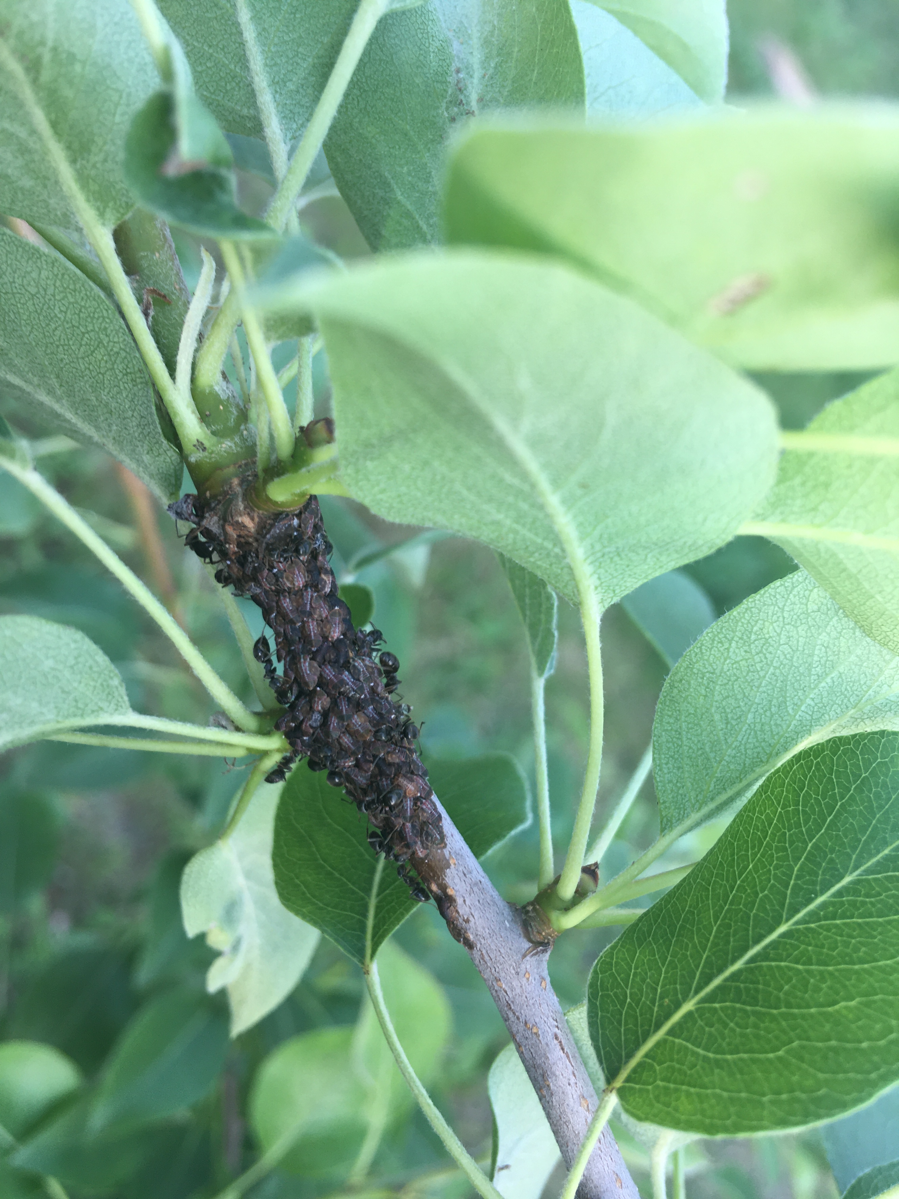 Медяницу не вижу. Побеги чистые. Должен быть липкий налёт на них. И шмели роится. Ну, если налёт есть, то сейчас можно неоникотиноидами опрыскать. Искра золотая, моспилан, актара и т.д.