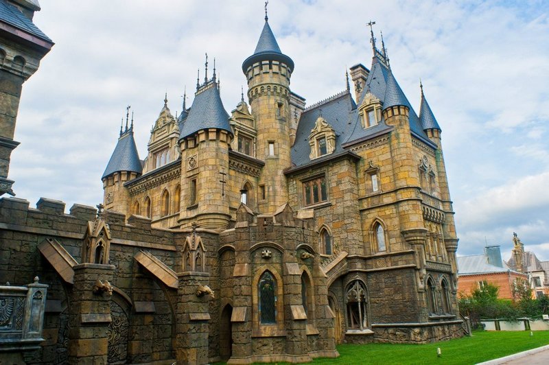 Если уж совсем точно – это единственный в своём роде современный замок в неоготическом стиле, построенный по принципу исторической реконструкции. Возможно, поэтому этот замок так любят реконструкторы. Однако это не копия какого-то конкретного замка, а скорее архитектурная фантазия на тему готики и романтизма.
