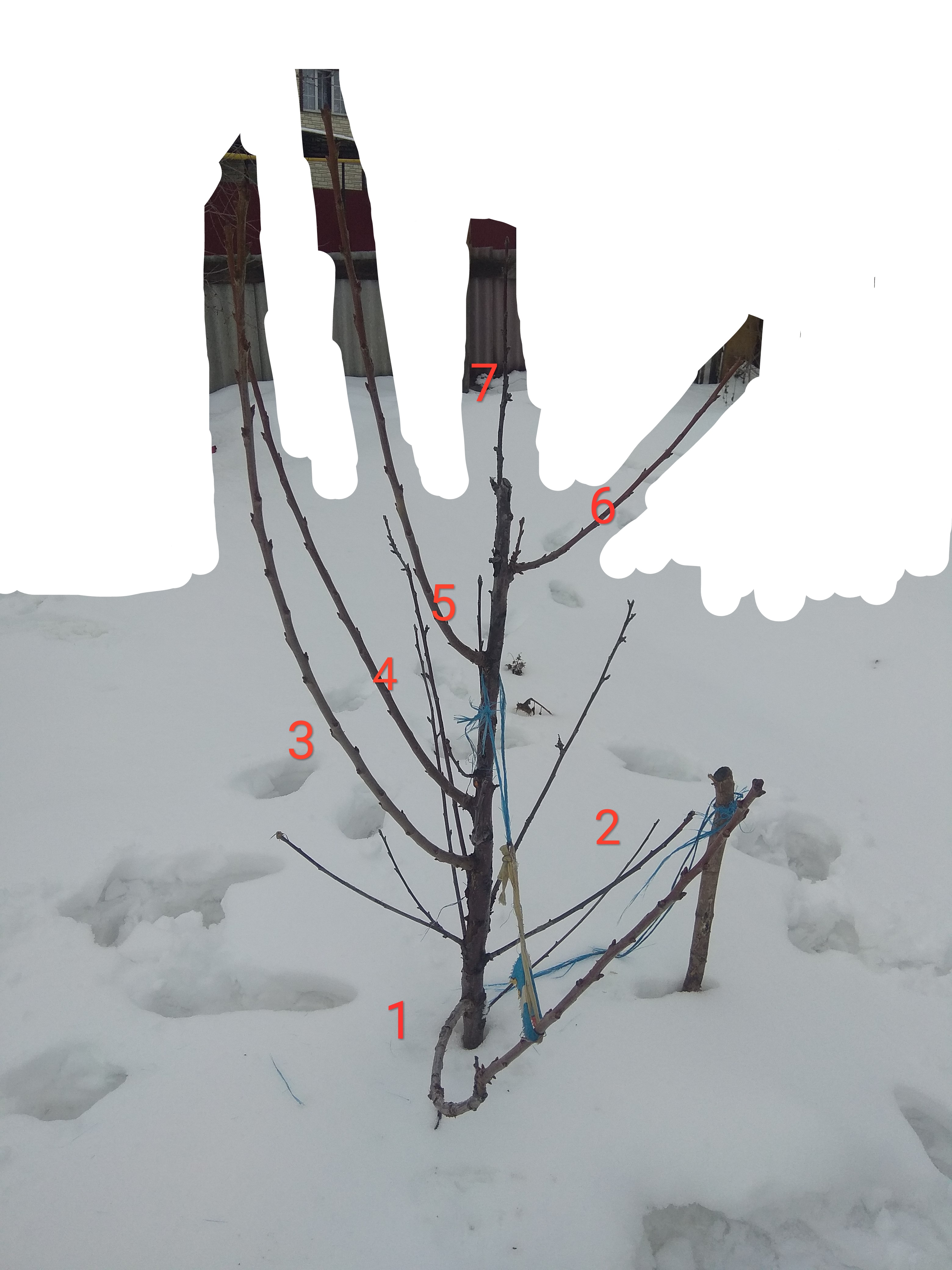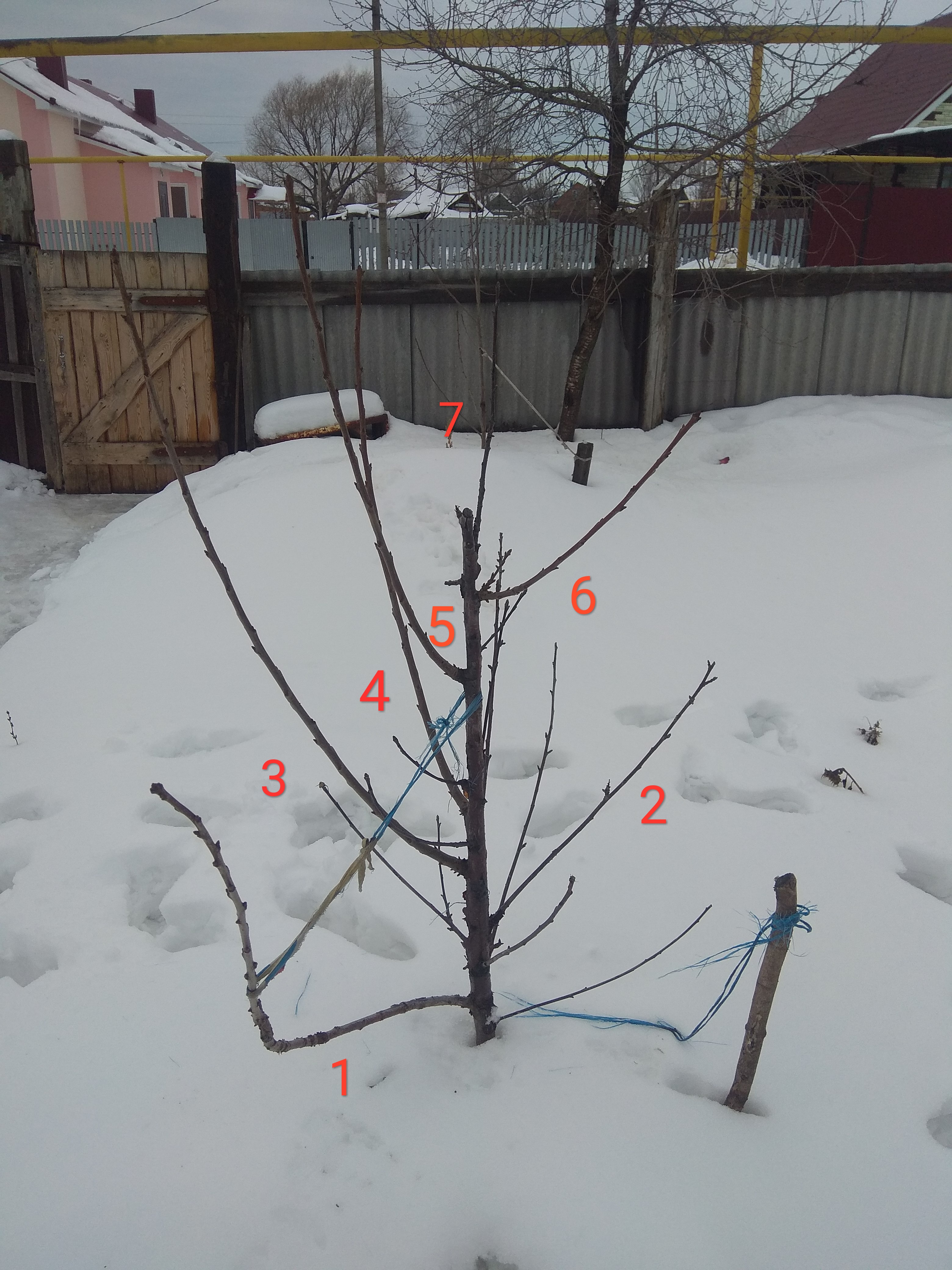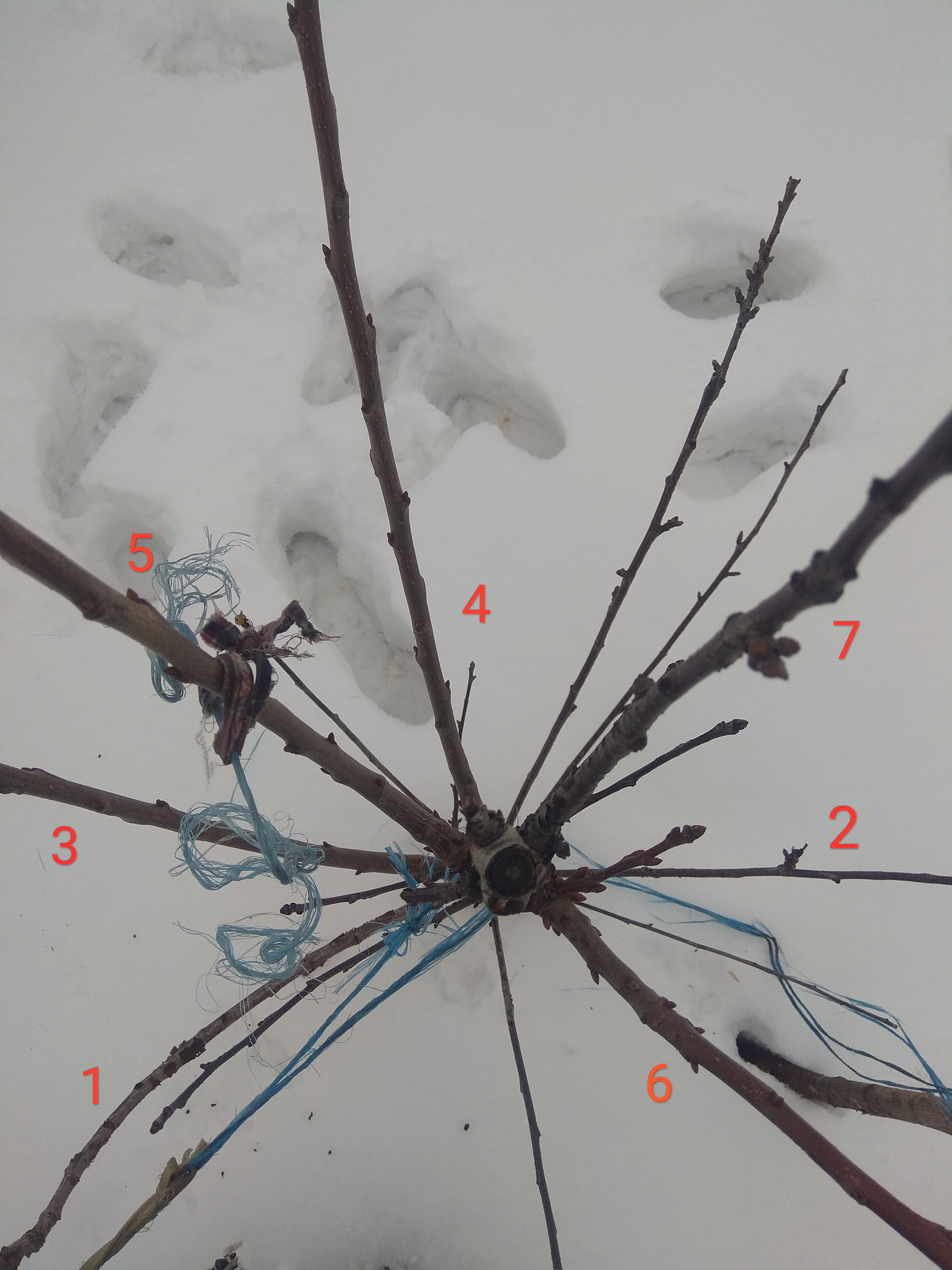 Не знаю, что и сказать. Вот обрезка - тут уже нельзя фантазировать, тут есть определённые правила, соответствующие физиологии растения, которые были в 70-е годы сформулированы(записаны) Б.Н.Анзиным. Эти два варианта, что я предложила Вам, не я придумала. Это - правила.Irinabog3 писал(а): ↑20.01.2020, 09:25 Zaryanka, слишком капитально резать рука не поднимается. Вариант с обрезкой над 5 выглядит неплохо. Смотрим в плоскости. Скелетные ветви 2 и 3 расположены напротив друг друга и меня смущает , что основных скелетных будет целых четыре. Вроде бы вырезать номер три, но она неплоха и по вертикали при ее обрезке на стволе станет неравномерно, пусто. Какие варианты действий?