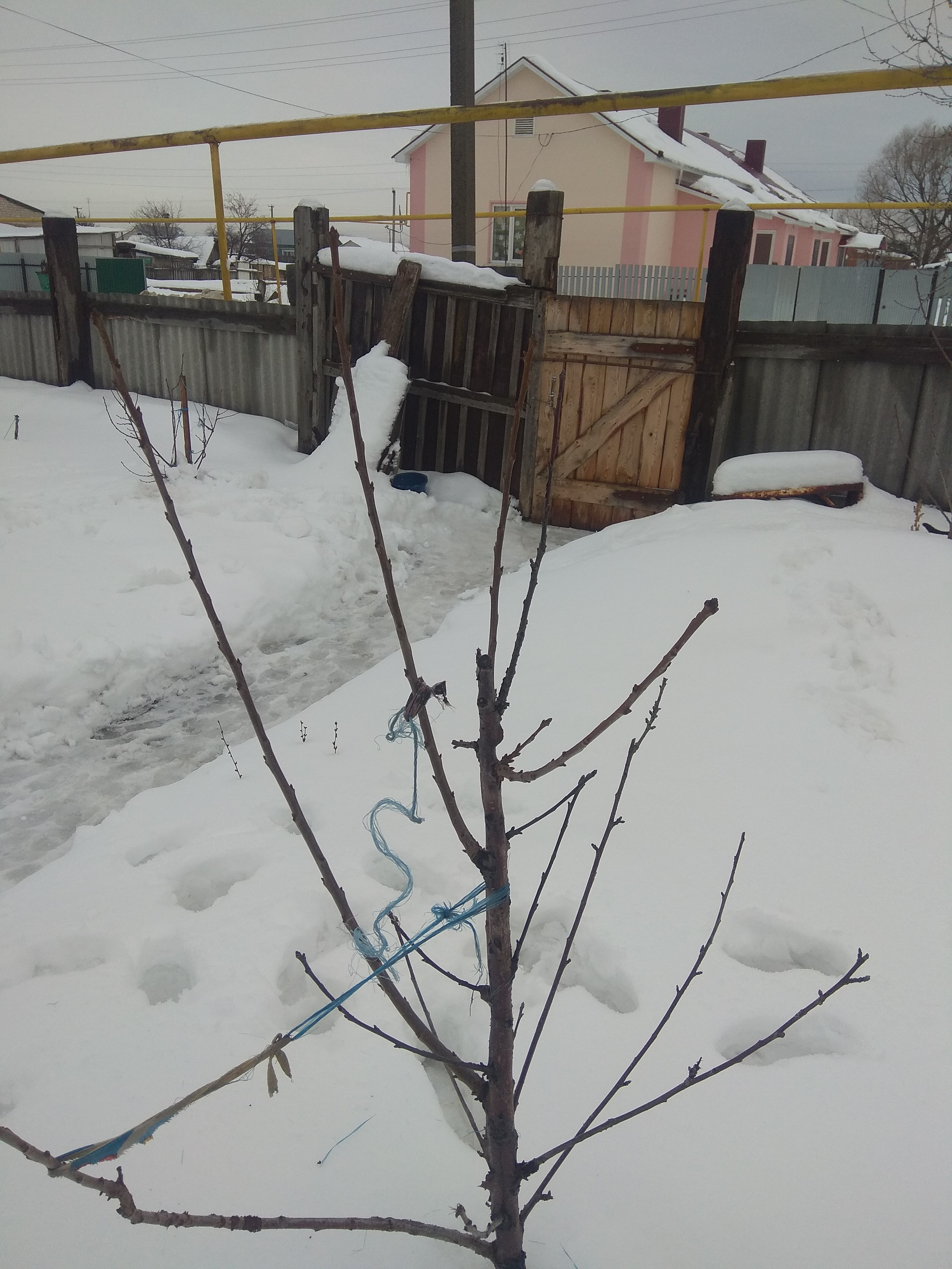 А ошибки всё равно бывают... Вот есть одна грушка молодая, у которой с северной стороны мало было веток... Решила отогнуть парочку к северу... Взяла и привязала их к колышкам
