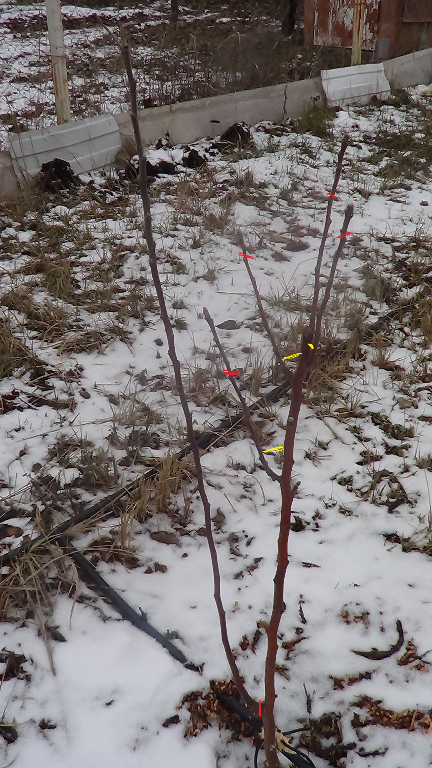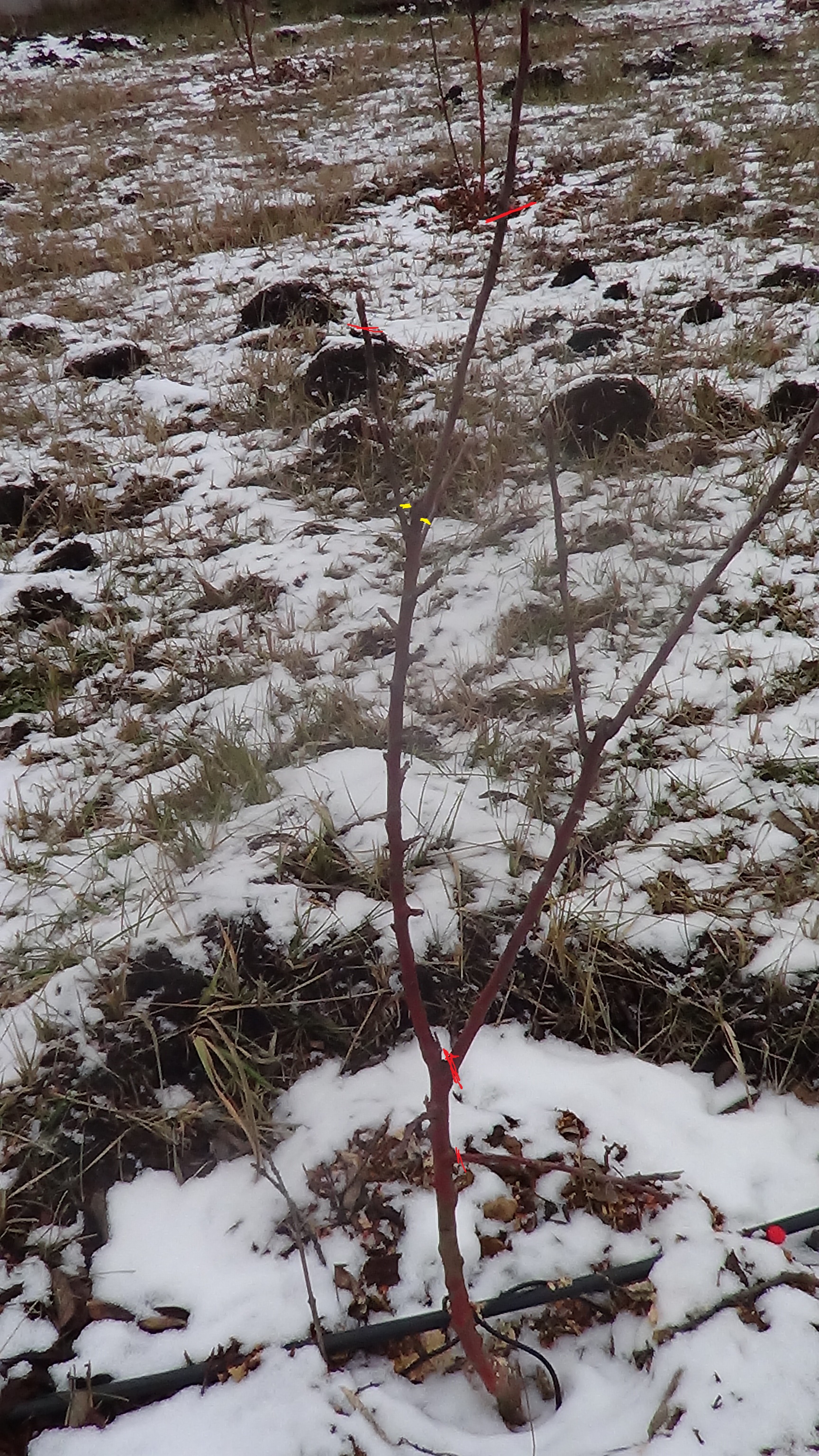 Выкладываю фото саженцев с пометками формирования кроны: