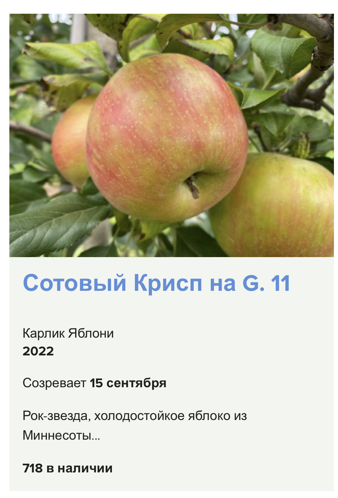 Ханикрисп созревает в штате Нью-Йорк (на широте Турции) на 10 дней раньше, к 15 сентября. (Скриншот питомника штата Нью-Йорк яблоки ещё плохо окрашены на фото 11 июня). Где ХК созревает в конце августа? https://www.cumminsnursery.com/buy-tree ... ree&id=259.