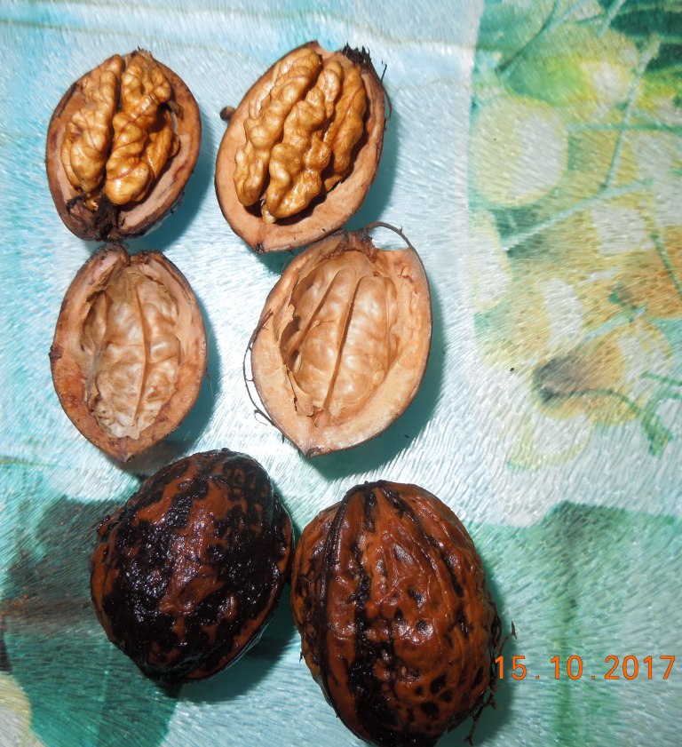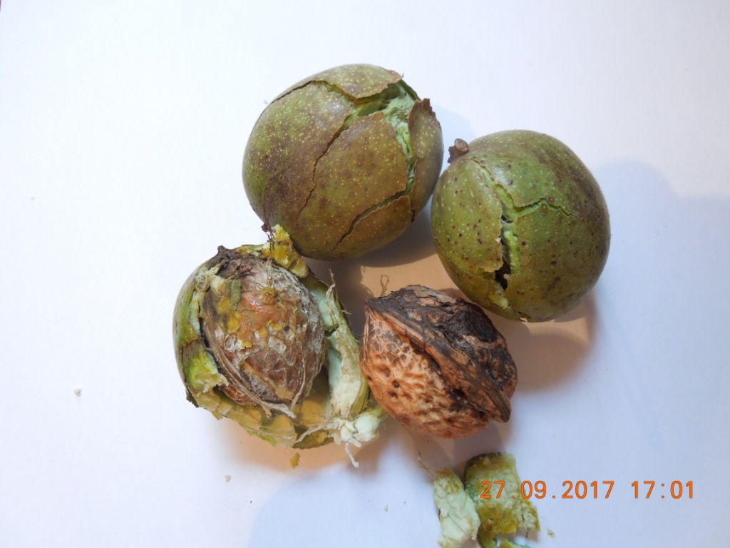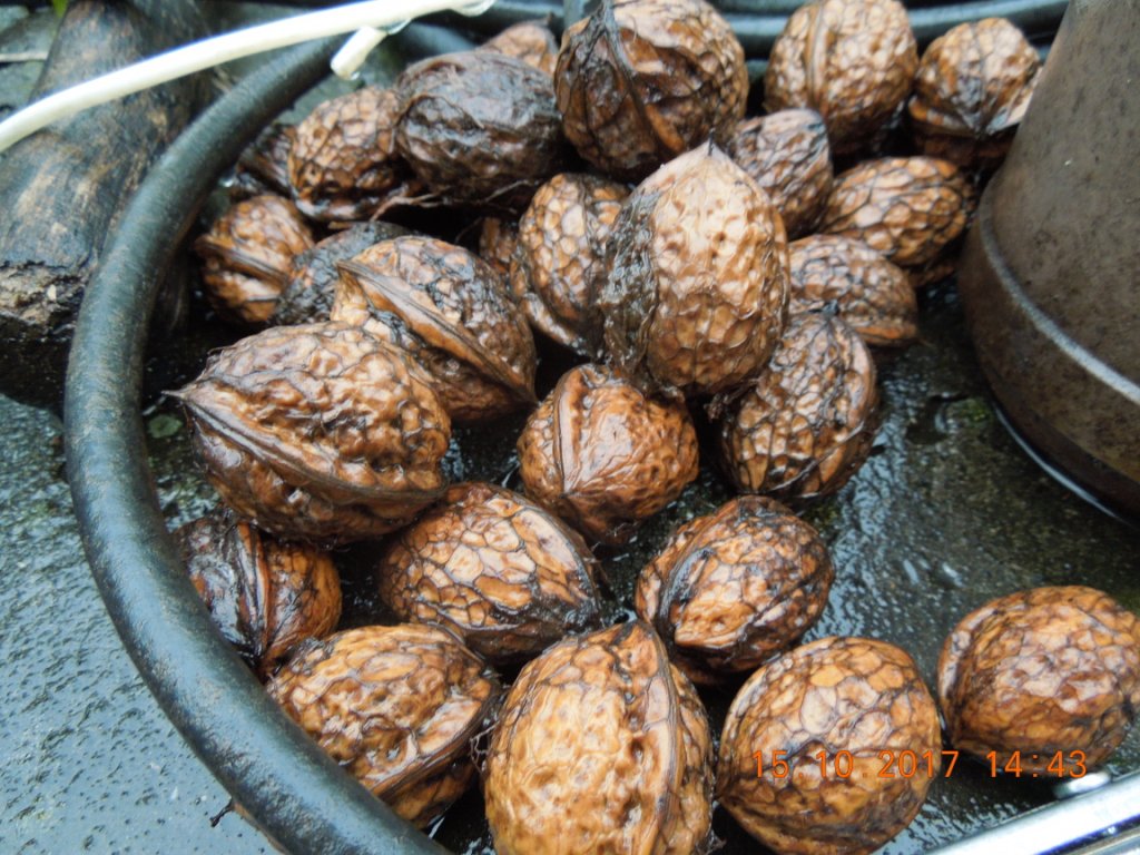 Сорванные в конце августа орехи лежат на улице, часто под дождем. Что интересно не плесневеют. Вчера открыл два, внутри сухонькие. Попробую часть этих орехов высадить в таких полу-гнилых околоплодниках.