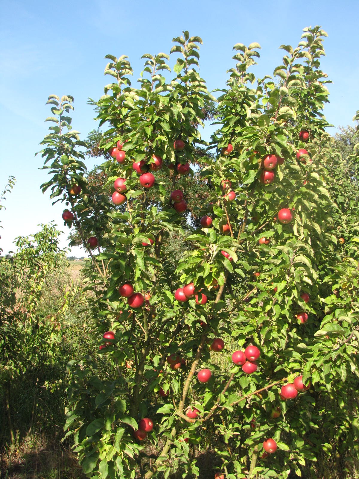 Я писал, что на карликовом подвое яблони почти не имеют боковых ответвлений, т.е. имел в виду, что они не такие сильные, как если подвой был сеянцевый или среднерослый. Соответственно и обрезать, и держать дерево в виде колоны намного проще. А так же предположил, если бы деревья были на карликовом подвое, боковые ветви не могли бы отрасти такими длинными.