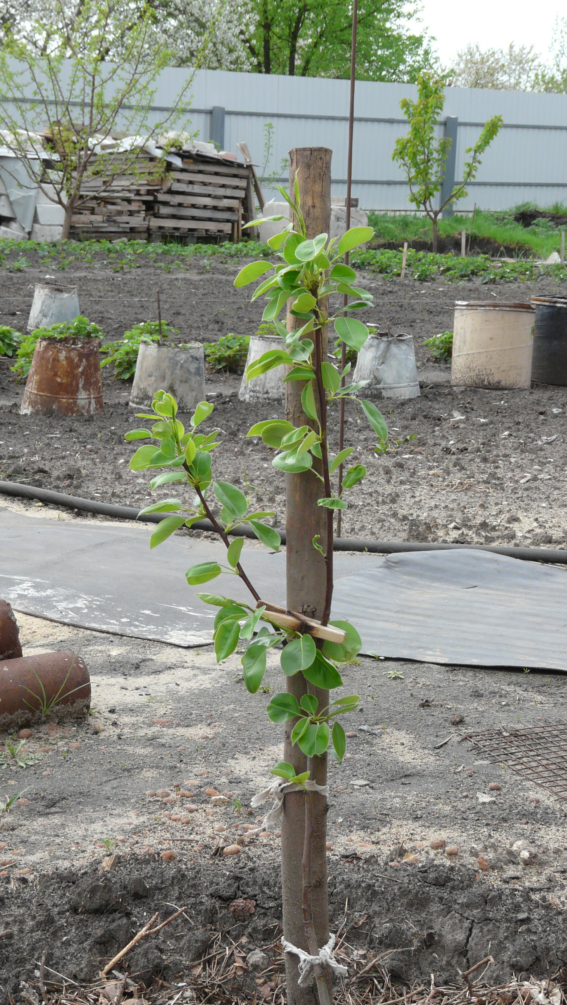 Девочки и мальчики, не оставьте без совета. Дюк Фесанна. 4 года. При посадке маленький прутик укоротила. Два года он плохо рос. Теперь вот такая метелка получилась. Даже не представляю с какого бока к нему (ней) подойти. Высота до развилки сантиметров 15-20.