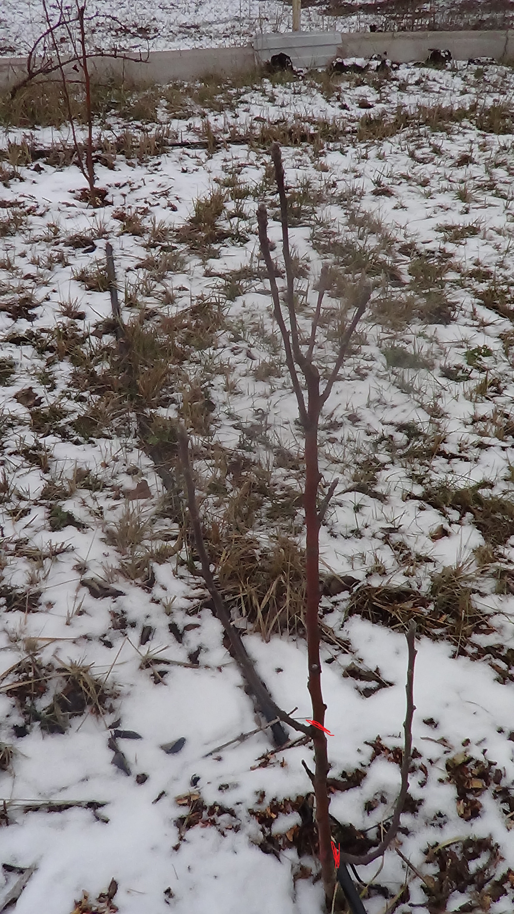 Я бы ещё и верхние почикал,оставил один стволик.пробудившиеся зелёные побеги нормировал в количестве 3-4 штук на первый ярус и придал нужный угол отхождения бельевыми прищепками.