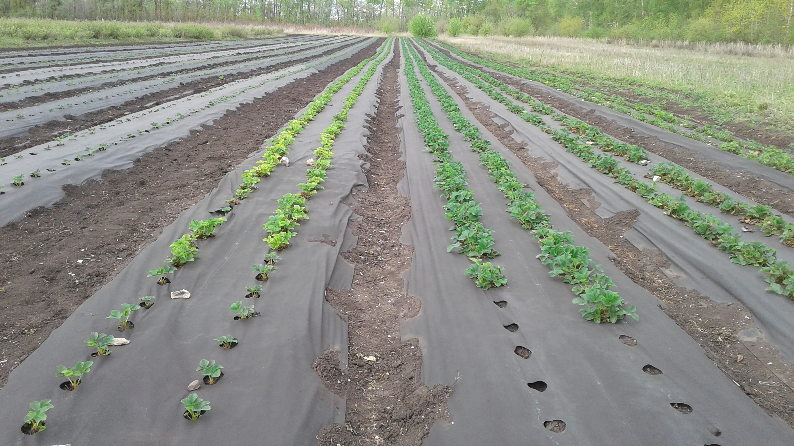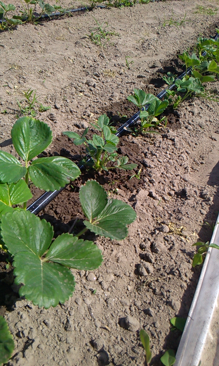 Это маточник. 4 сорта. Высажен месяц назад. Кимберли, Хоней и Элиани чувствуют себя прекрасно. С Альбой все гораздо хуже. С самого начала кусты развиваются слабо, много карликовых, еще и цвет с сюрпризом. Вот и думаю: это особенность и восприимчивость сорта такая или мне вирусное фриго подсунули в Щучине? Справедливости ради, пара десятков кустов выглядят мощно и нормально цветут. Из 1200.