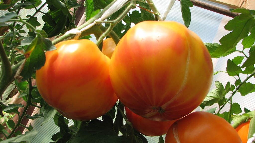 А может жара этого года так повлияла на окраску томатов Олимпийского огня?