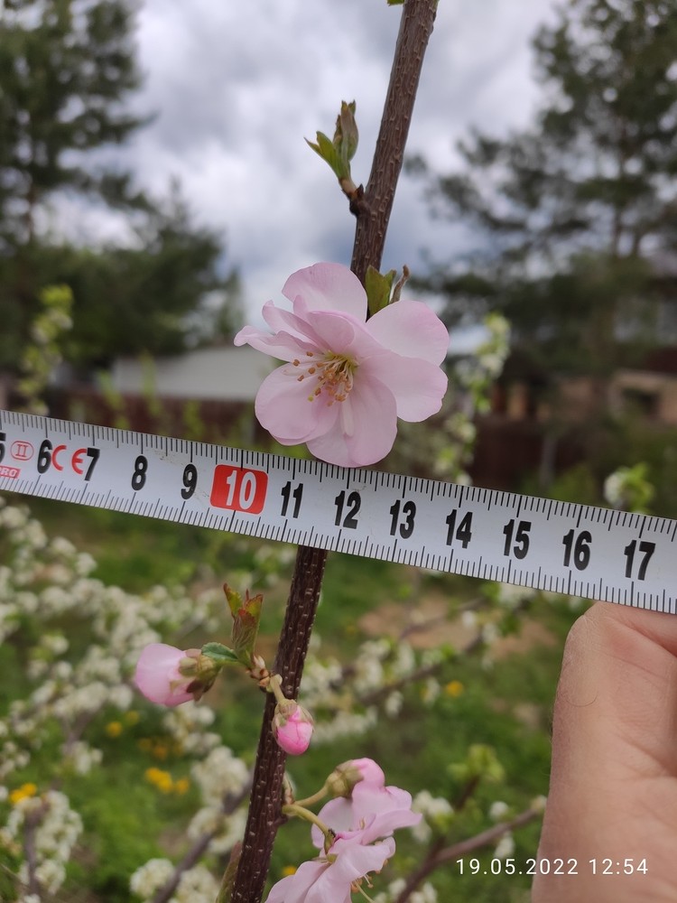 Купил саженец Заречной ранней, как опылитель для Конфетной. Сегодня на нём вот такие цветы. Лепестков штук десять. Надеюсь что это китайская слива, а не что-то декоративное. Помогите определиться.