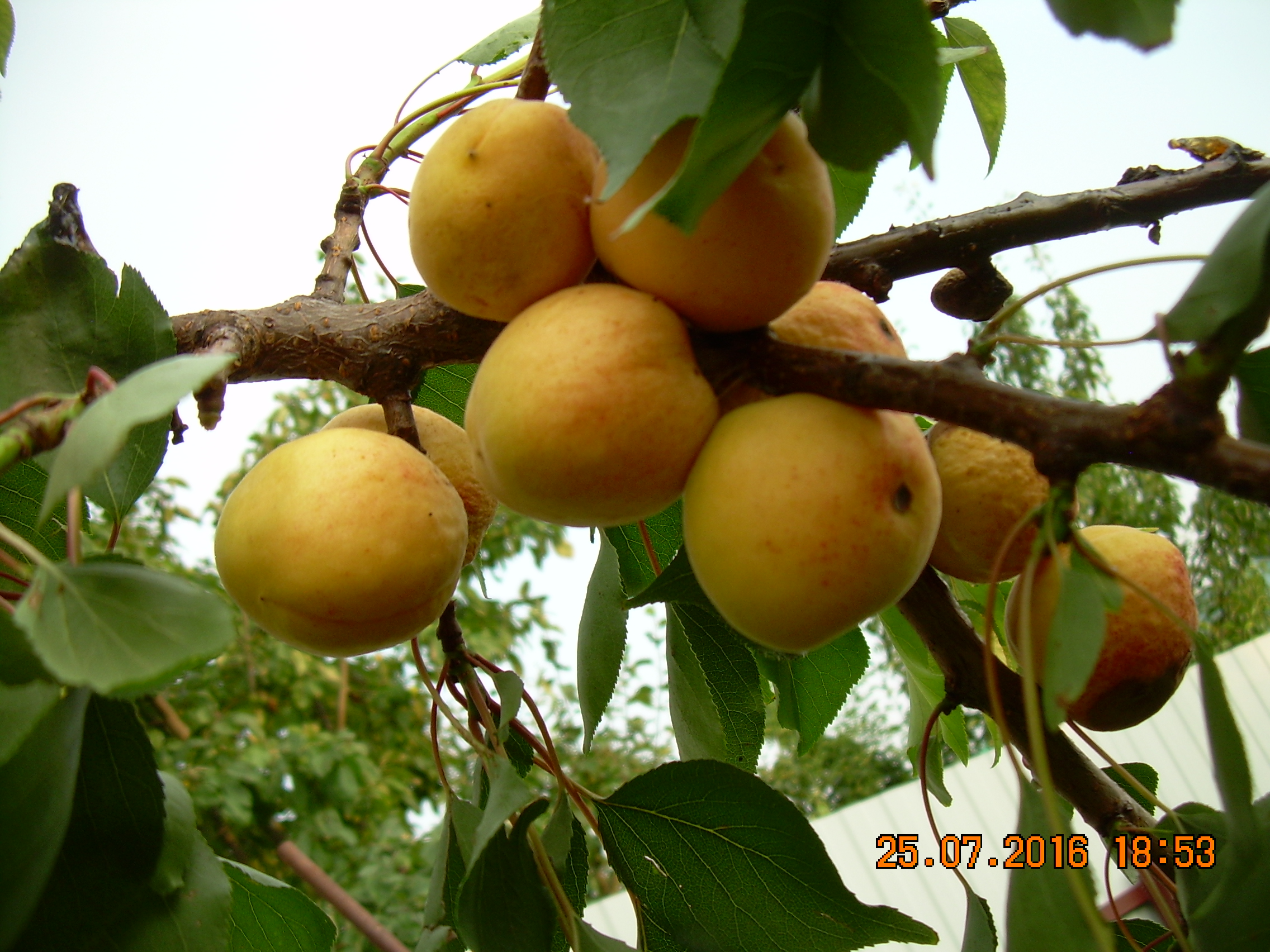 Я сегодня просто растерян. Этот абрикос СПИЛИЛИ. Сегодня решил еще некоторое количество плодов с него сорвать и что я вижу- аккуратные, распиленные части ствола и ветки с недозревшими абрикосами на земле. Собрал все плоды и набрал веток с сеголетними приростами. Буду завтра-послезавтра прививать окулировкой. Сейчас ветки без листьев плавают в воде.Видимо во Владимире "слишком много абрикосов".