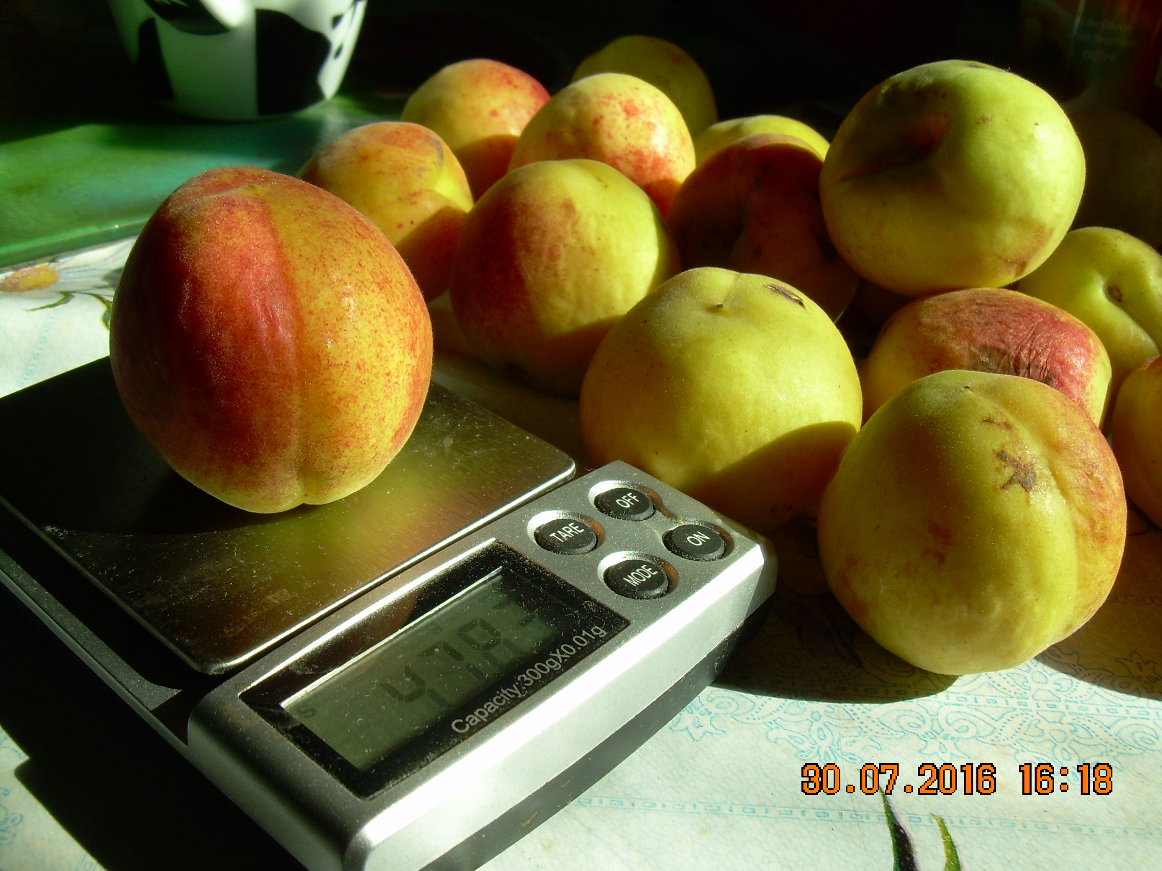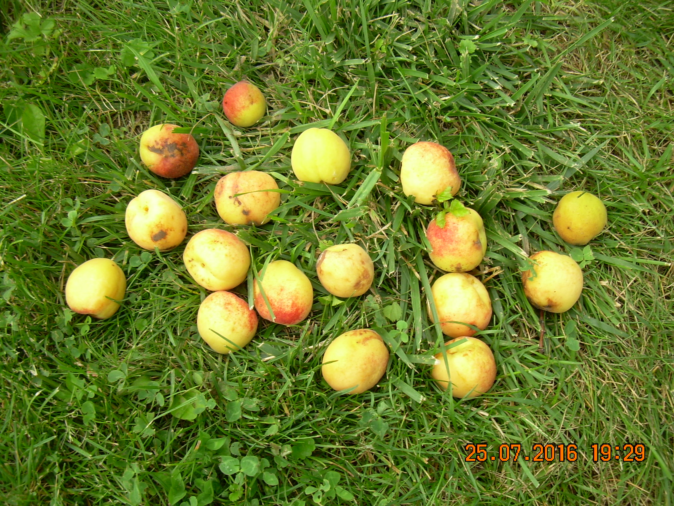 Плоды начали созревать. Сорт не знаю, но по вкусу вкусней "Академика", и по размеру не меньше. Дерево долго росло одно, но все равно плодоносило. Только здорово страдает от мониллиоза - требует тщательной обработки.