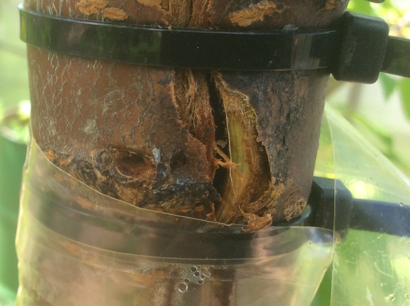 При таком повреждении появляются листья и цветы, но через некоторое время все, что выше повреждения погибает.