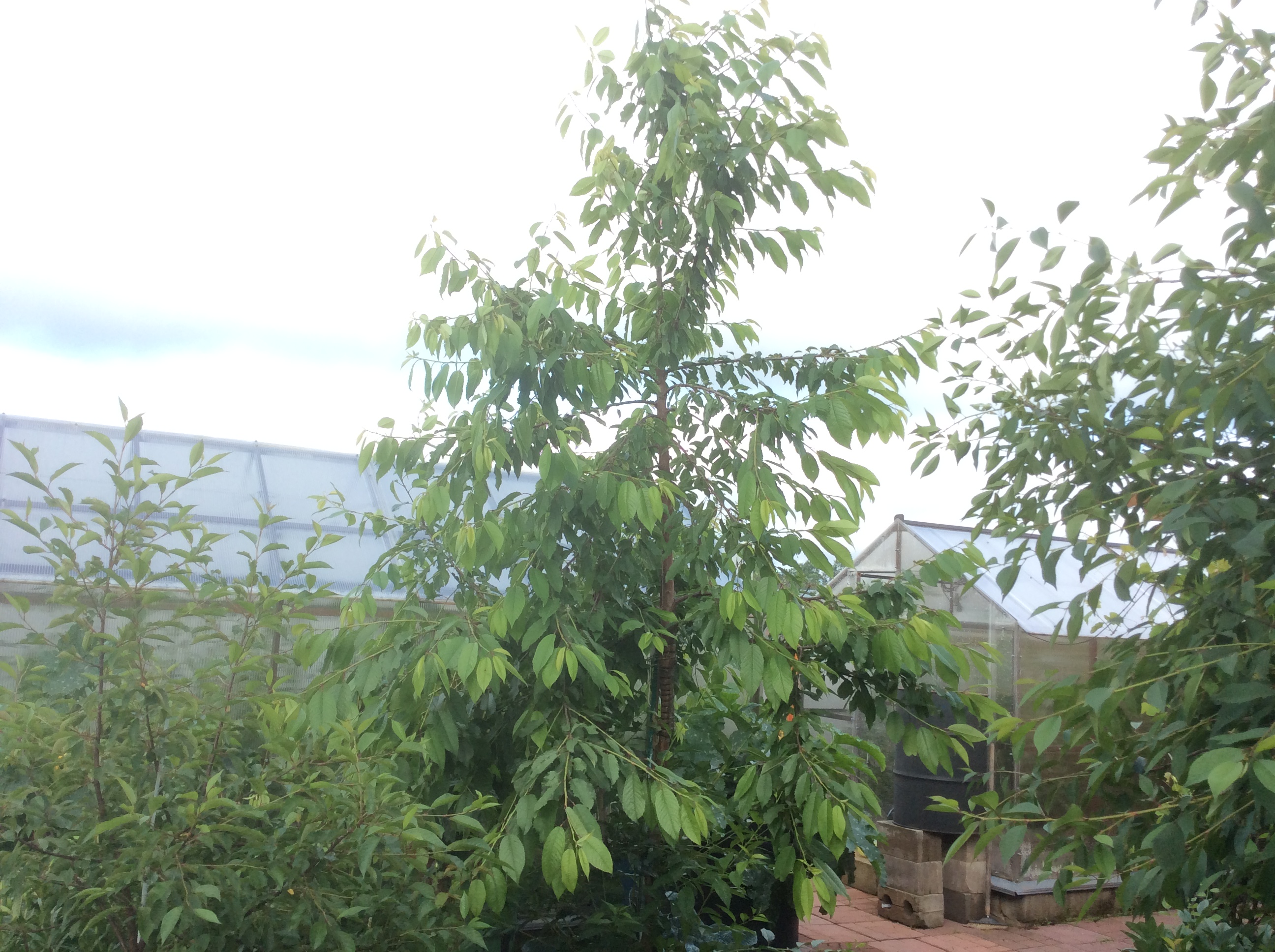 Это молодая прививка черешни на вишне. Ещё не плодила. И алыча казахская, ей 5 лет примерно.