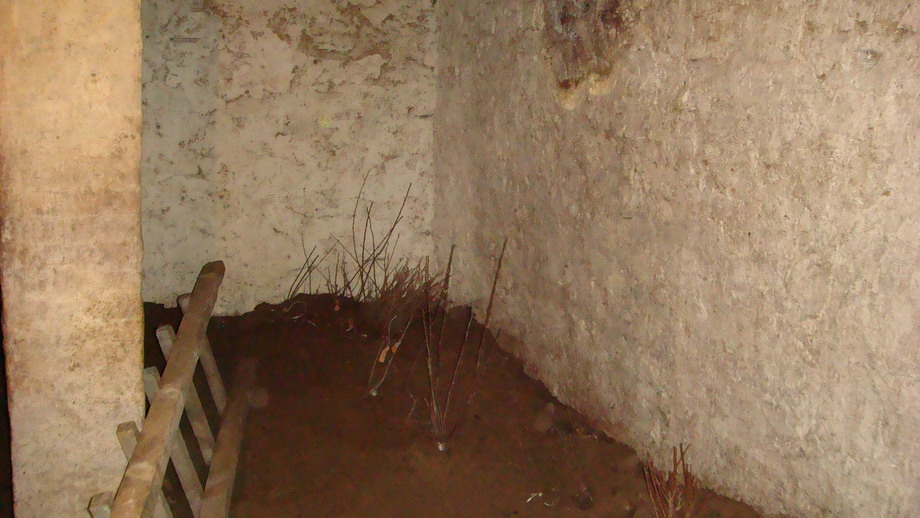 Называется подвал. Постепенный спуск вниз ( лесенка делалась) и внизу камера, сверху все засыпано землей. Только ничего не бетонировали, все земляное. Температура разная 0-+4. От глубины наверное зависит. Примерно так .