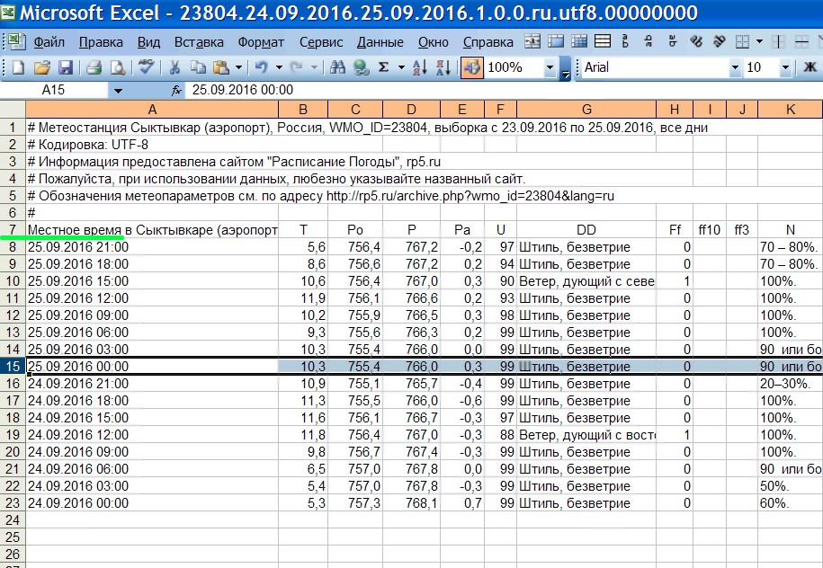 Никола писал(а): Я взял данные с архива метеостанции Сыктывкар (аэропорт) (WMO ID) 23804. http://rp5.ru/%D0%9F%D0%BE%D0%B3%D0%BE% ... 1%80%D0%B5