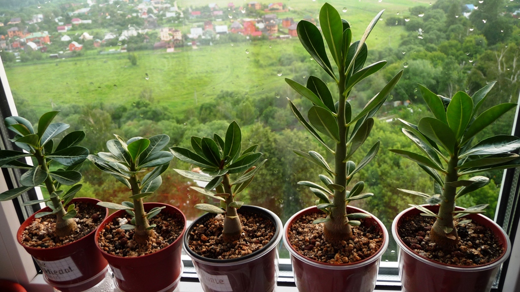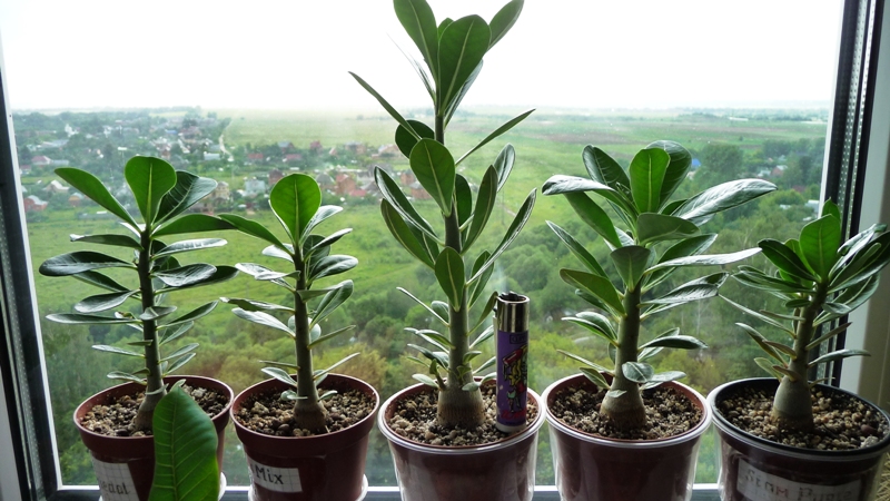 Я решила немного сбавить темп...Ибо адениумы уже вытеснили практически все цветы из дома. На весну планирую сеять только мини. Этой весной сеяла мини 4 сорта, взошло только 3 семечка одного сорта, все остальные сгнили. На фото мои миньки. Им 3 месяца.