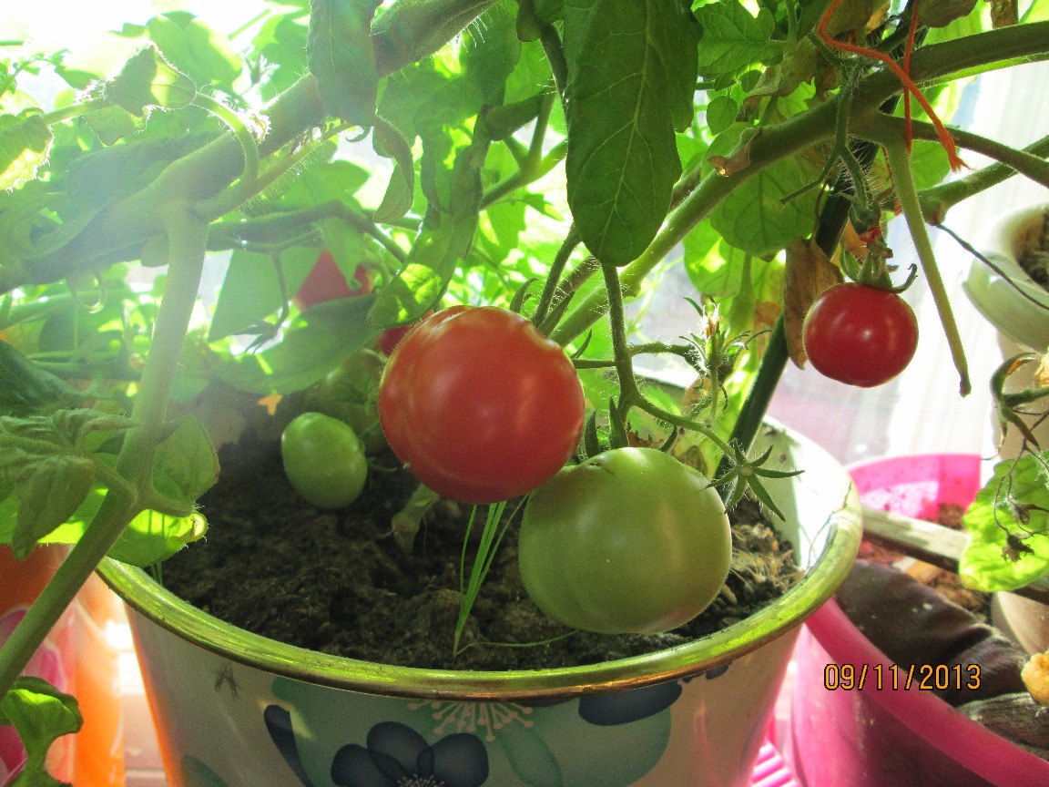 Докладываю обстановку. Сейчас у меня плодоносят перцы и помидоры. Еще укоренила пасынки черри Иры, черри Лизы и Бербераны. Ира опять дылда, а Берберана, умница, даже на окошке ведет себя прилично. Некоторые кустики помидор на окошке засохли, но с Розовой жемчужины успела взять пасынки.