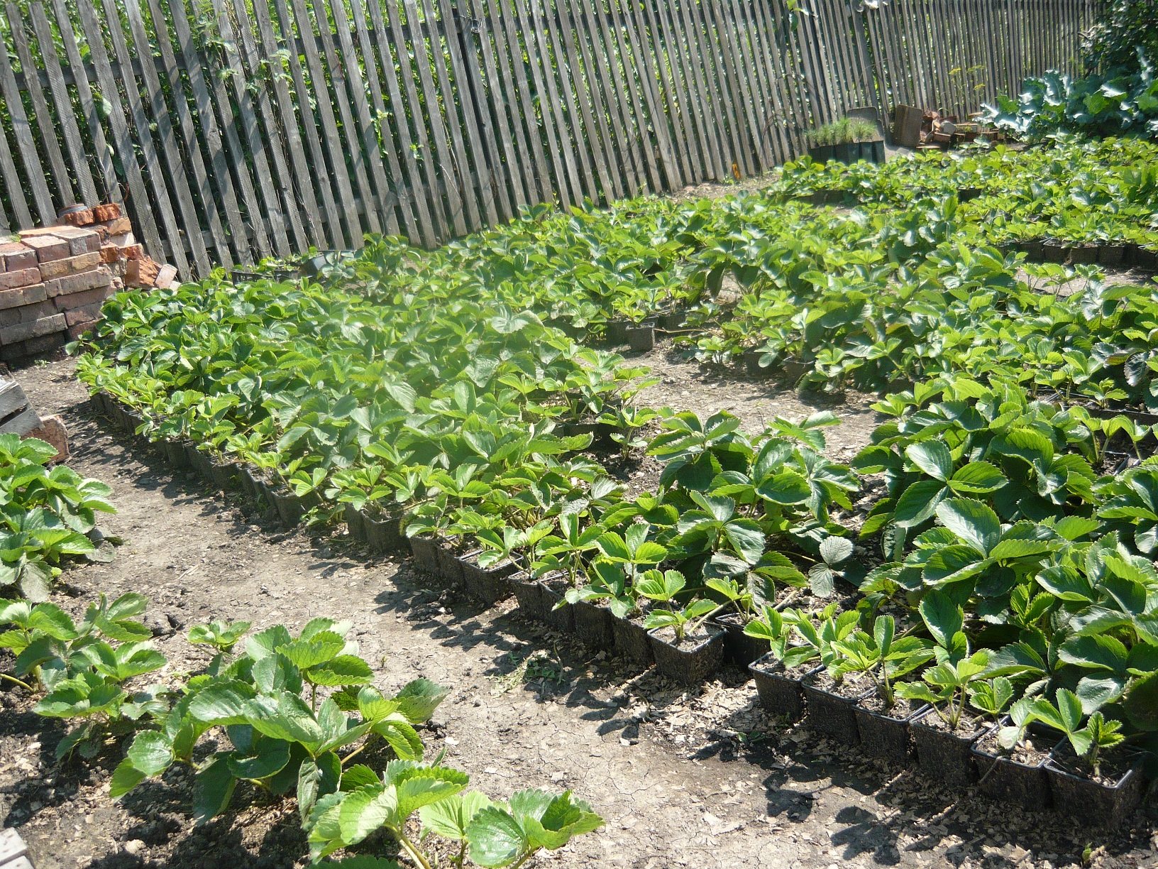 Вот посадил вчера немного усов на укоренение (около 300шт), лето нынче неахти, да супруга по незнанию помогла, оборвала все первые усы. На сегодня рассада поднялась и выглядит совсем неплохо, посмотрим как дальше будет.