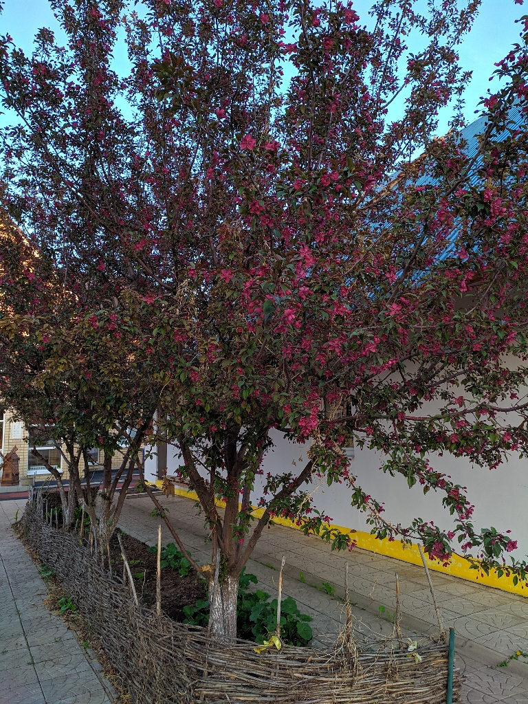 В Оренбурге в "Национальной деревне" растут такие яблони. Не знаю что за сорт, но цветут очень красиво.