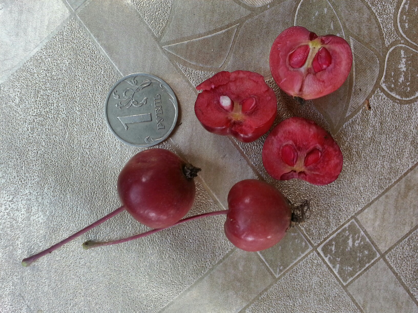 Вот это точно она. В ГБС лет 6 нормально растет. Зиму 16/17 пережила. В прошлом году расстроила паршой. Хотел собрать семена на сеянцы, даже яблоки паршой были порваны
