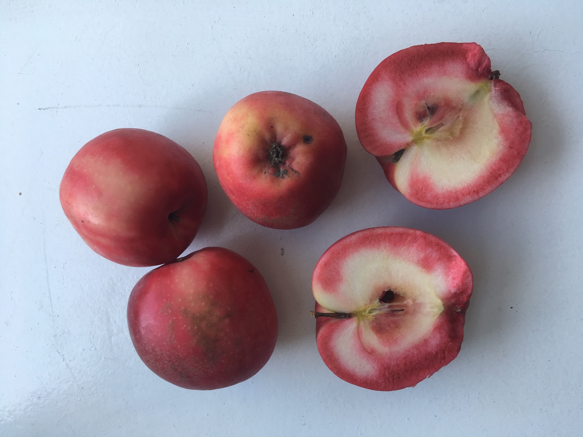 Как "побочный эффект" в селекции, появилась интересная декоративная антоциановая форма среди сеянцев: антоциановая колонна АК-30-5-6 (Royalty х McIntosh Wijcik). По сути, это Royalty compact, полукарликовая мелкоплодная форма с ярко выраженной колоновидностью