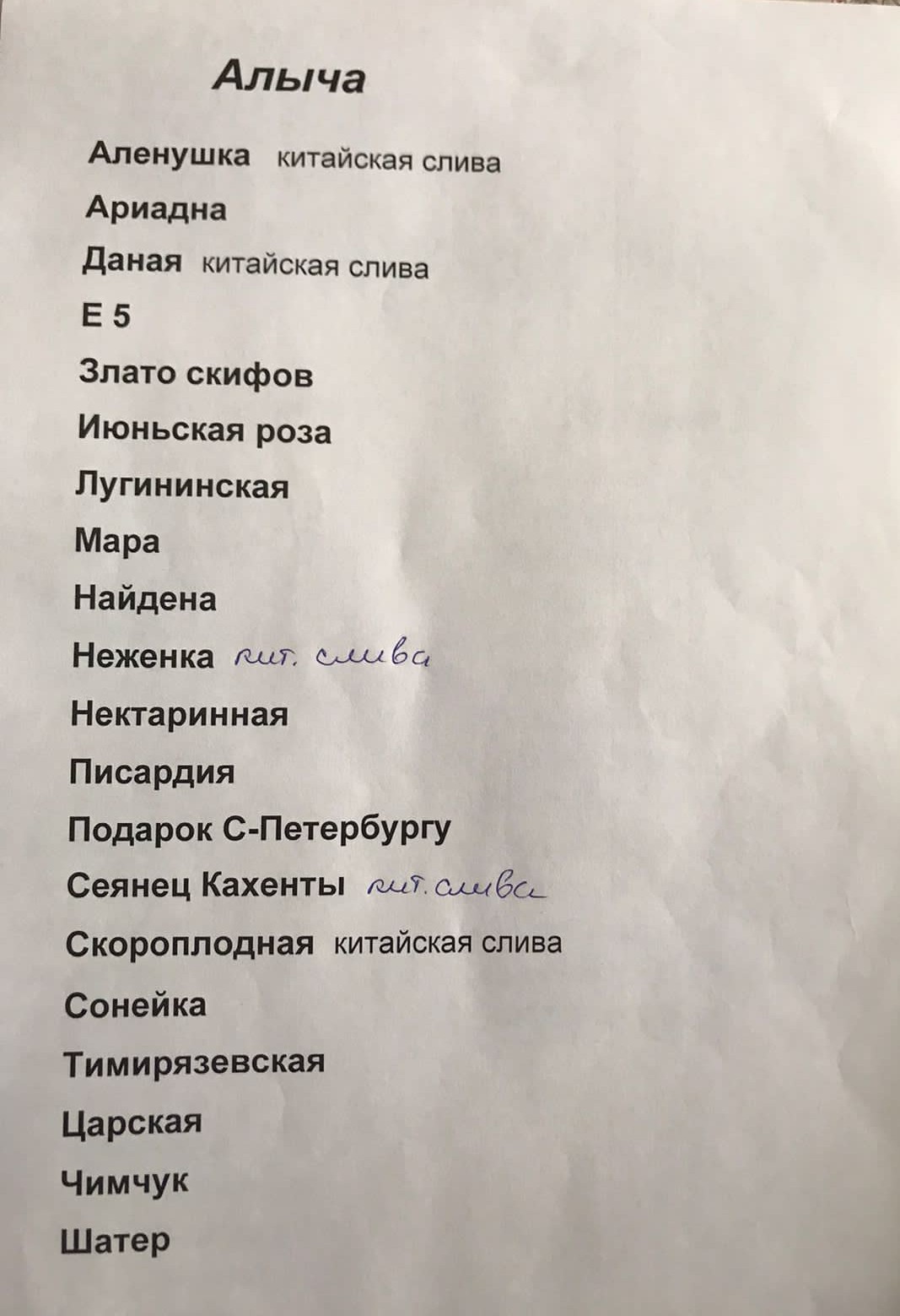АЛЫЧА гибридная (слива русская) по 120р: Алмаз, Глобус, Злато Скифов, Колоновидная, Кубанская Комета, Найдёна, Нектаринная Ароматная, Сонейка, Царская;