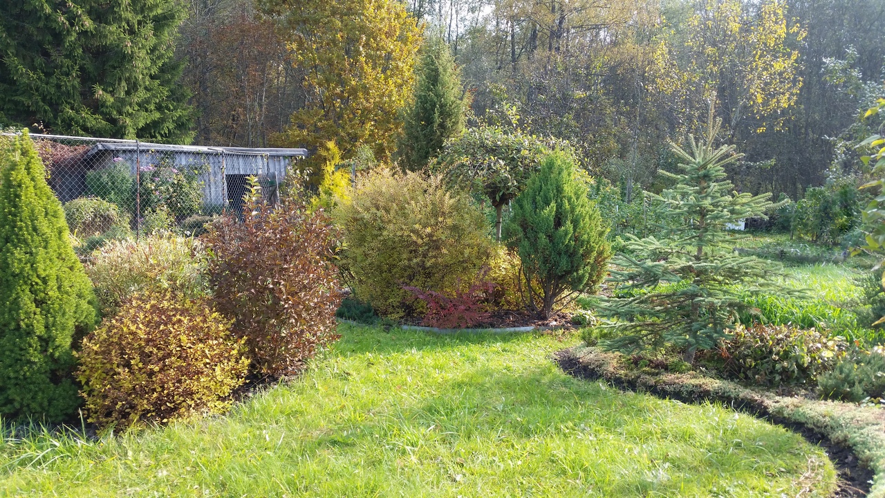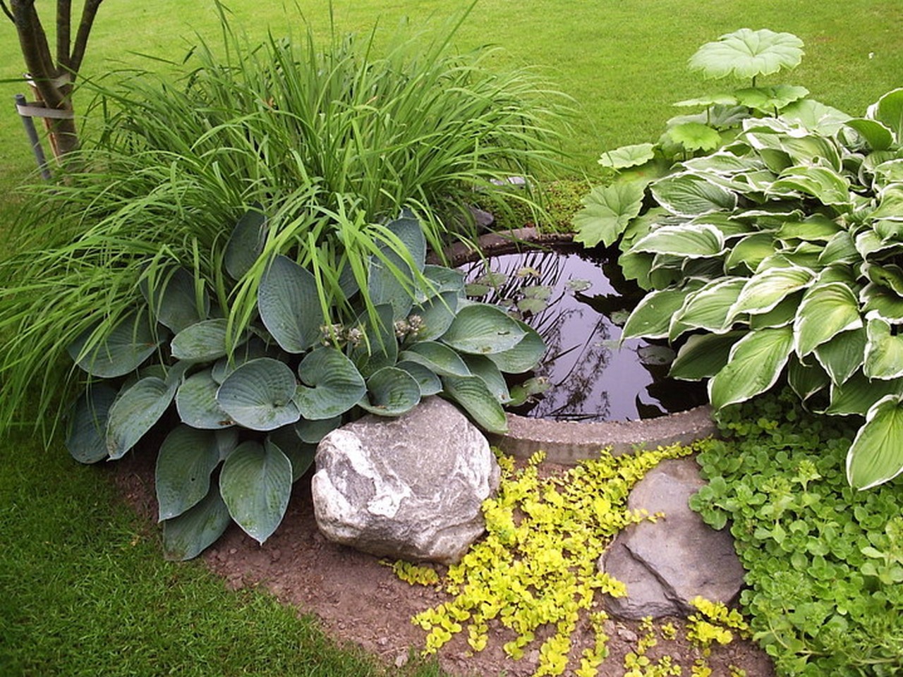 Никогда не задумывалась об этом , но на моей любимой даче (давно накидала фоток себе в папочку...), где-то в Эстонии... отлично всё сочетается. Этот колодец у них в тени от боярышника, а дальше газон.