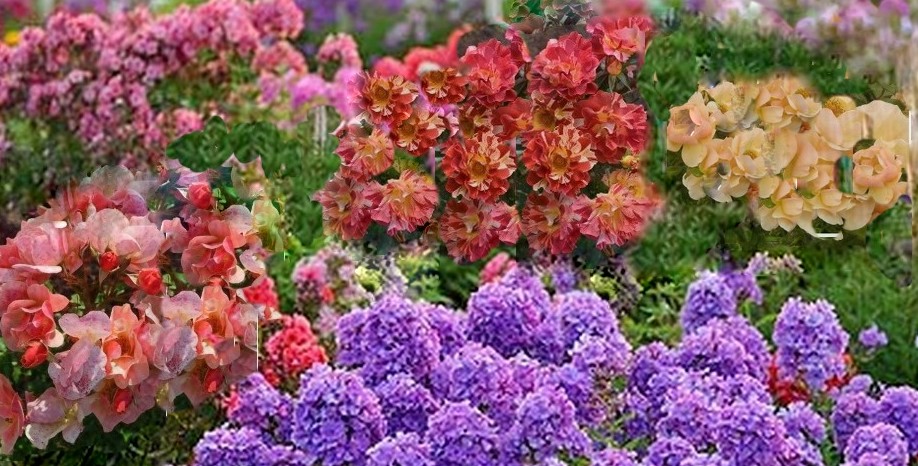 Розы, петунии, хризантемы, георгины, хосты, астры, гладиолусы, лилии, клематисы и др.