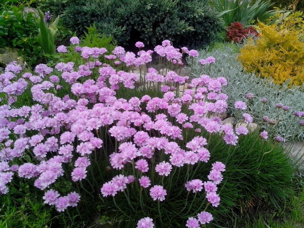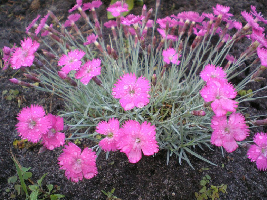 Там вводить можно только нежное, лучше розовое... Потому и ясколку посадила и ель голубую, чтобы немного приглушить буйство красок. Пару лет подумываю убрать эту клумбу вообще, оставить Глауку Глобозу и можжевельник снизу. Но пару-тройку лет пусть побудет, пока ёлочка не подрастёт. Вот и пришла мысль временно посадить туда что-то. И мысль о гвоздике очень даже подходящая.