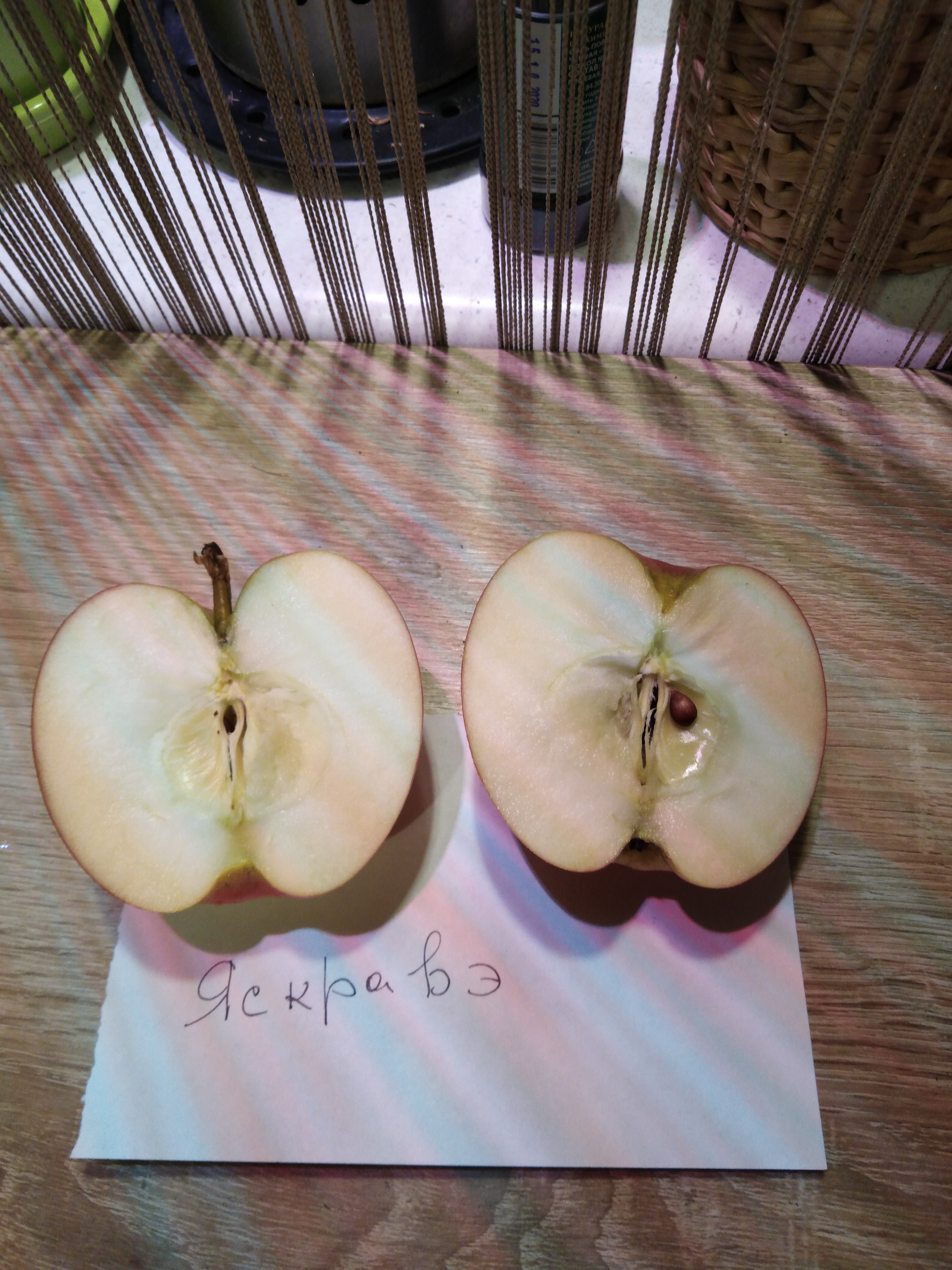 Вот и мой " Редкрафт " В разрезе. Вкус кисло-сладкий, благородный. Не очень сочное. Мякоть ещё плотная, может полежать.