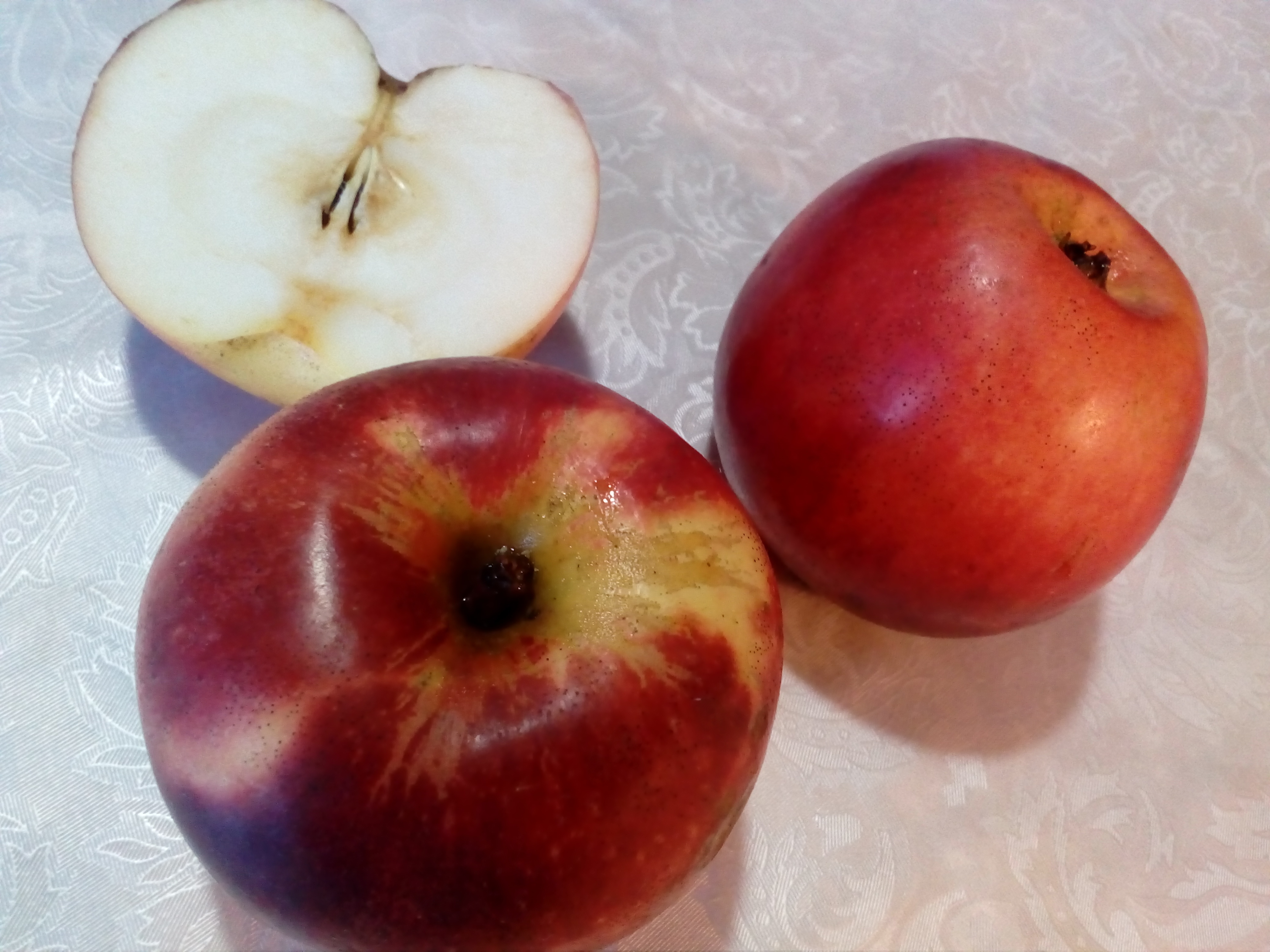 Память Липунову заметно плотнее, мякоть белая с зеленоватым оттенком. Сразу обращает на себя внимание более грубая кожица. Вкус более сладкий, чем у СЗ, но сока тоже не достает. По сравнению с предыдущей дегустацией пару месяцев назад, вкус изменился мало. Запас лёжкости еще очень приличный. Похоже, этот сорт тоже требователен к летнему теплу и соответствующих условий выращивания.