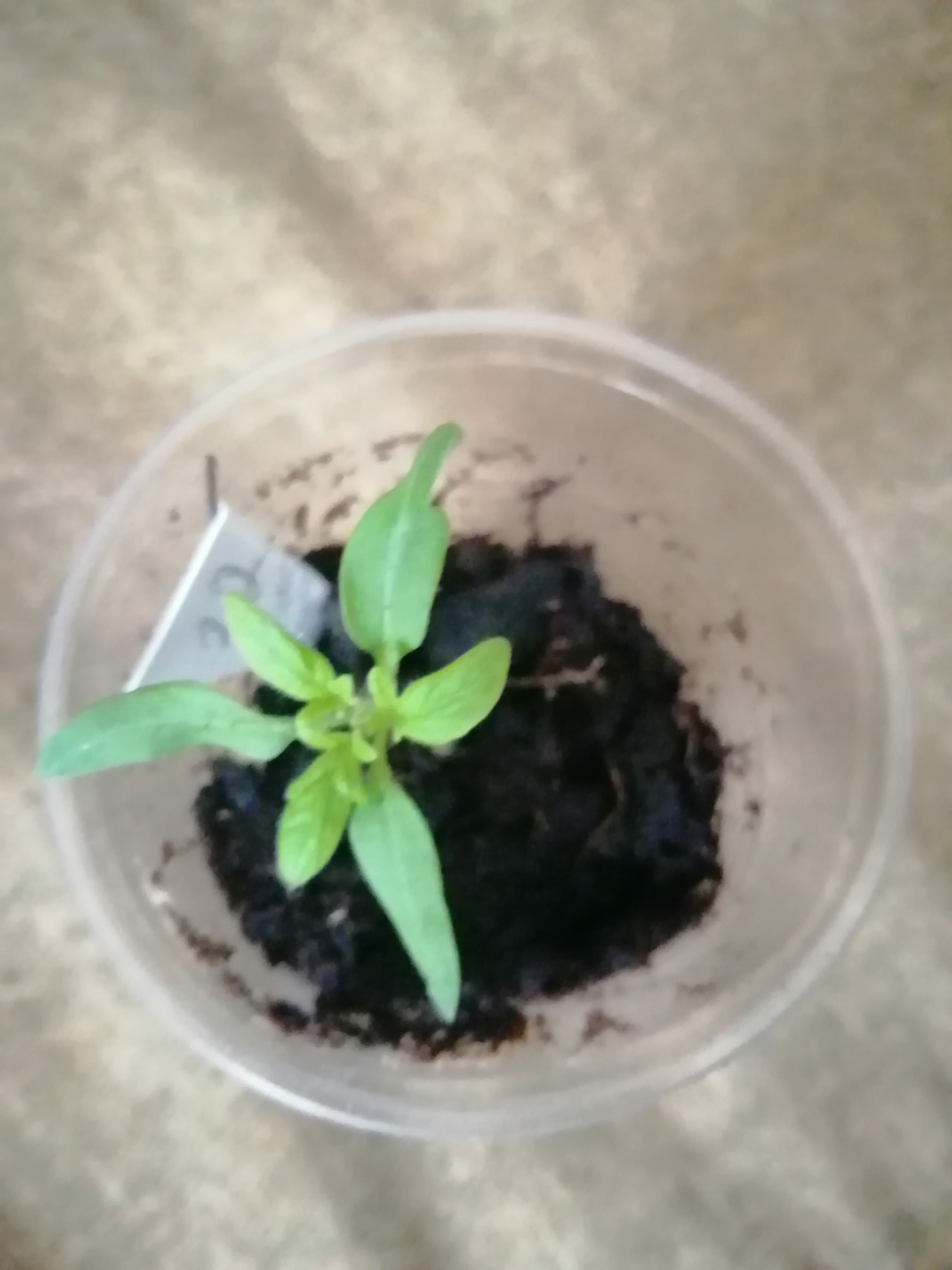 В фазе 2х настоящих листьев перевалю в горшки по 0,9л и заглублю почти по семядольные листочки.