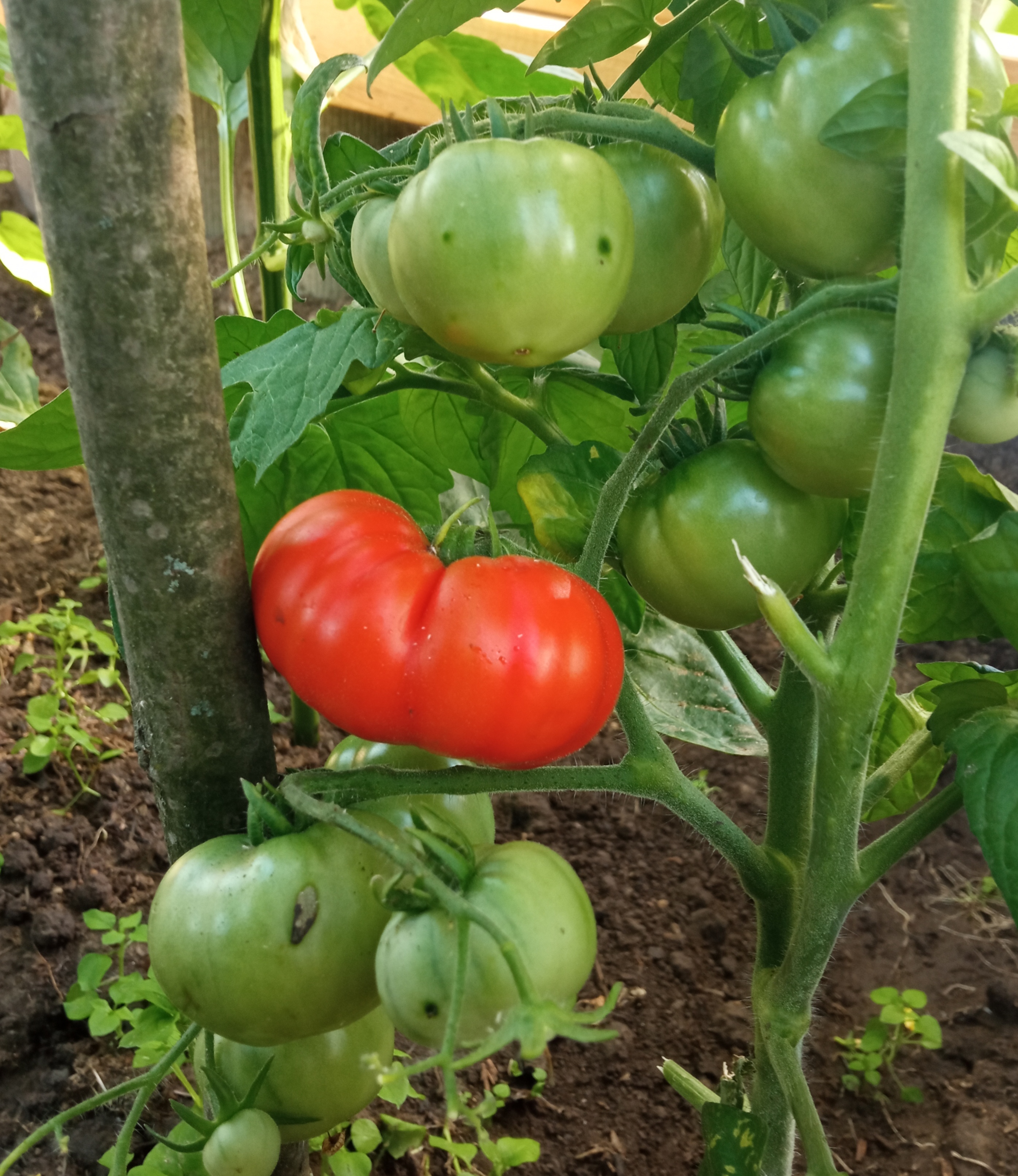 А потом на верхних кистях он выдал урожай больше всех в теплице, огромные томаты наверху висели... В этом году повторяю из своих семян.